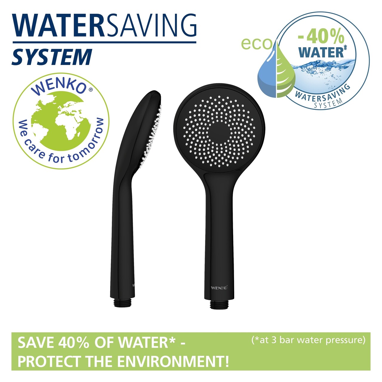 Cand vine vorba de capete de dus, WENKO se concentreaza din nou pe durabilitate. Cu capete de dus Watersaving economisesti apa, energie si bani. Toate modelele cu sistem durabil Watersaving sunt concepute astfel incat utilizarea unui element de economisire a apei rezulta intr-un consum de mai putin de 8 litri de apa pe minut (la o presiune a apei de 3 bar), fara a fi percepute in mod constient. Prin urmare, se economiseste 40% din apa fara nicio pierdere a confortului - deoarece se asigura in continuare un debit constant cu un jet de apa plin.