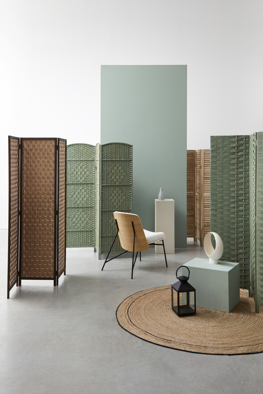 Paravan decorativ / despartitor camera Jalila, Bizzotto, 135x180 cm, hartie/paie/lemn de plop, verde