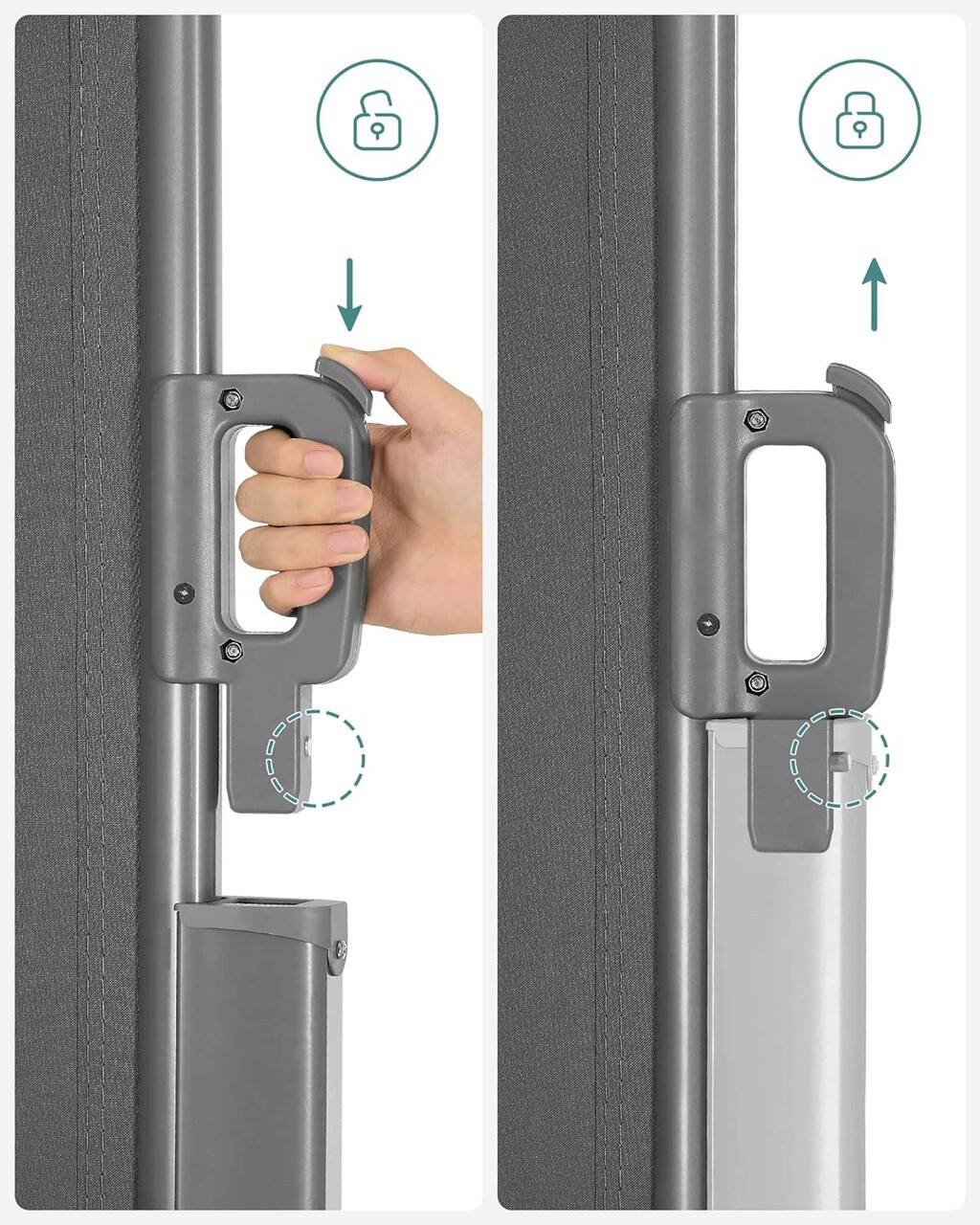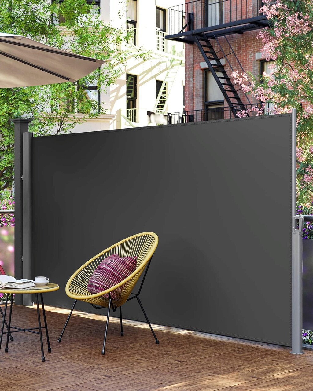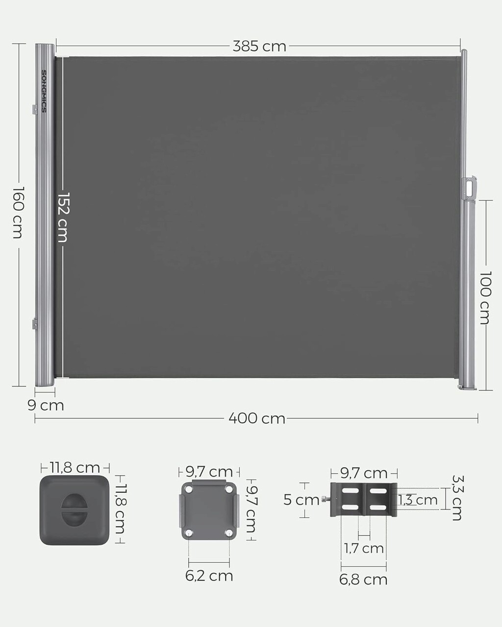 Paravan lateral pentru gradina sau terasa / copertina solara laterala, Songmics, sistem de fixare inclus, UV 50+, 160x400 cm, gri