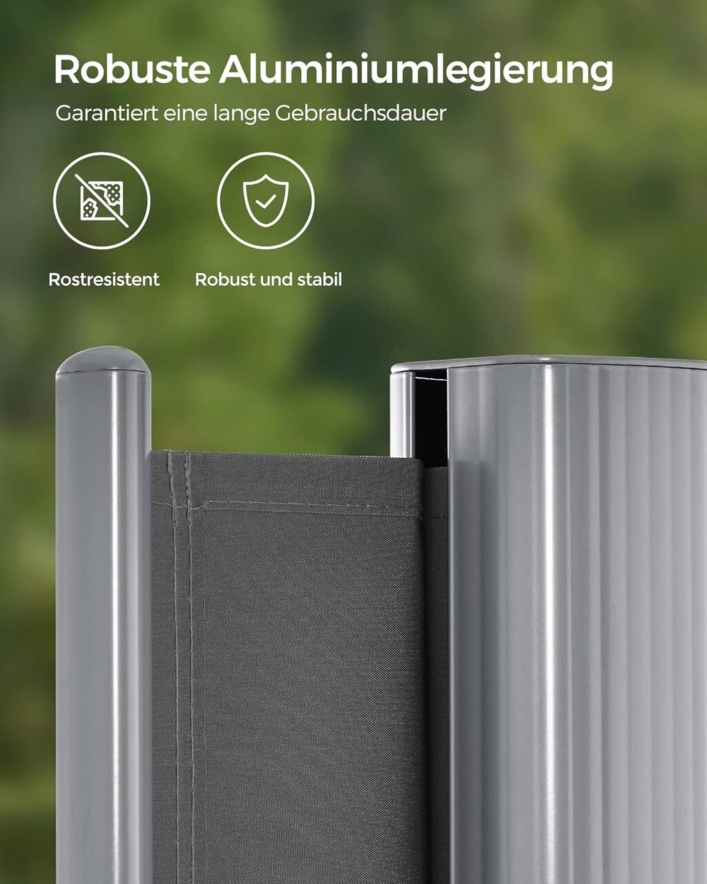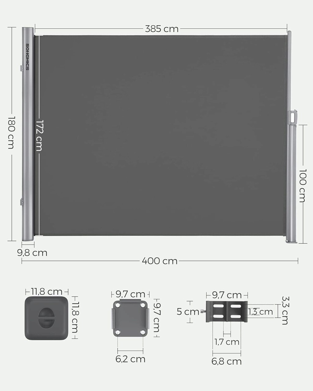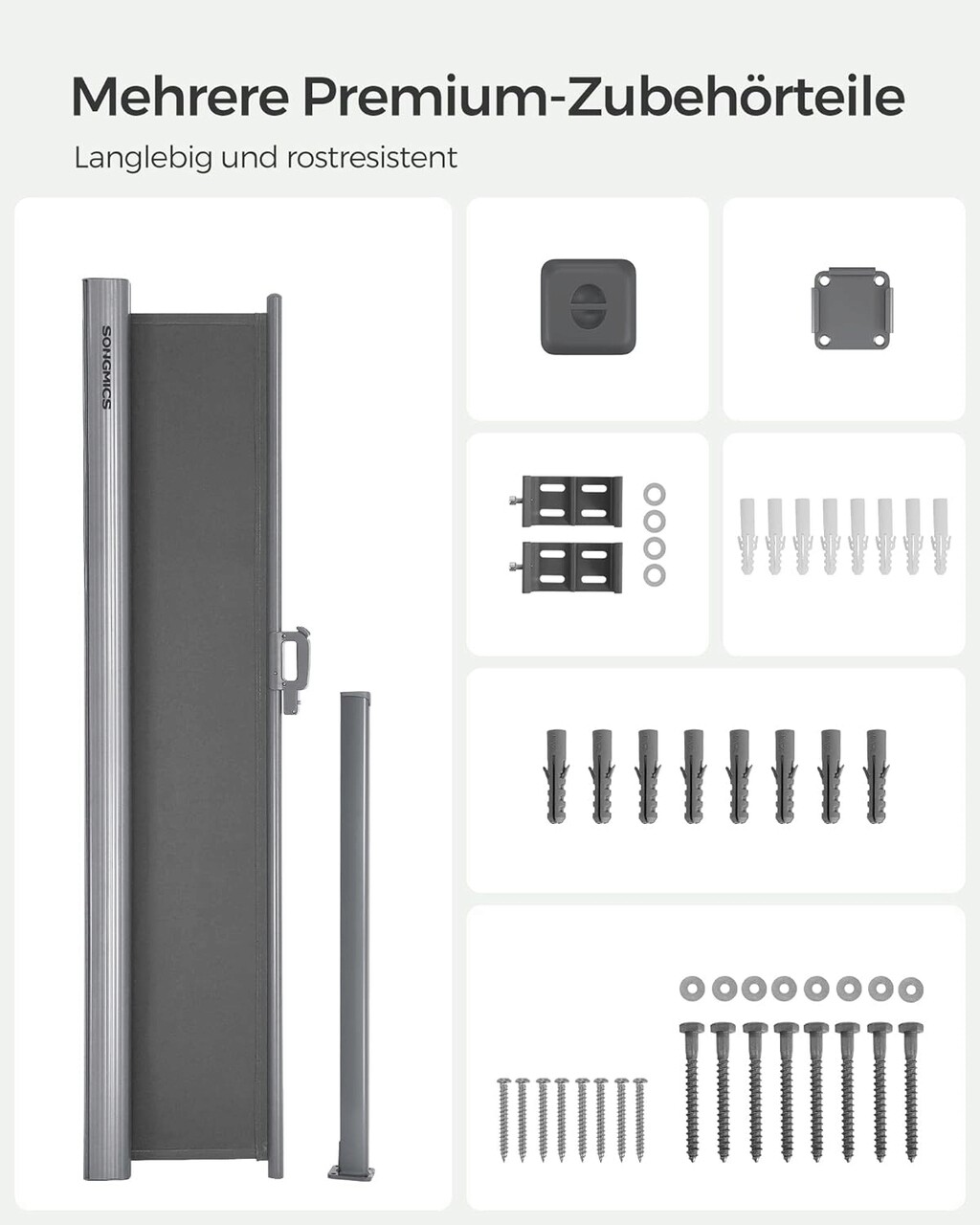 Paravan lateral pentru gradina sau terasa / copertina solara laterala, Songmics, sistem de fixare inclus, UV 50+, 180x400 cm, gri