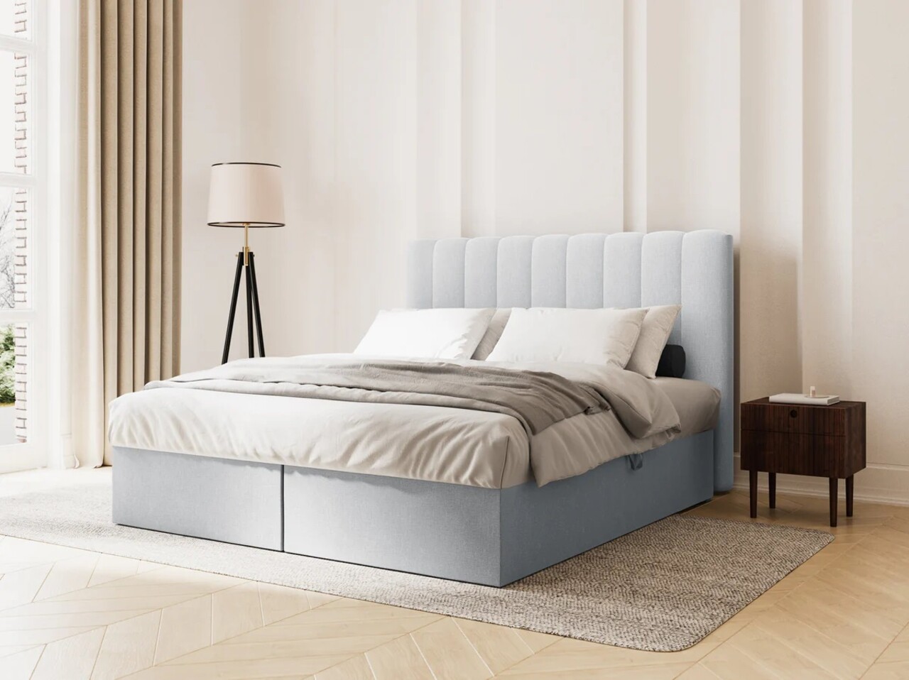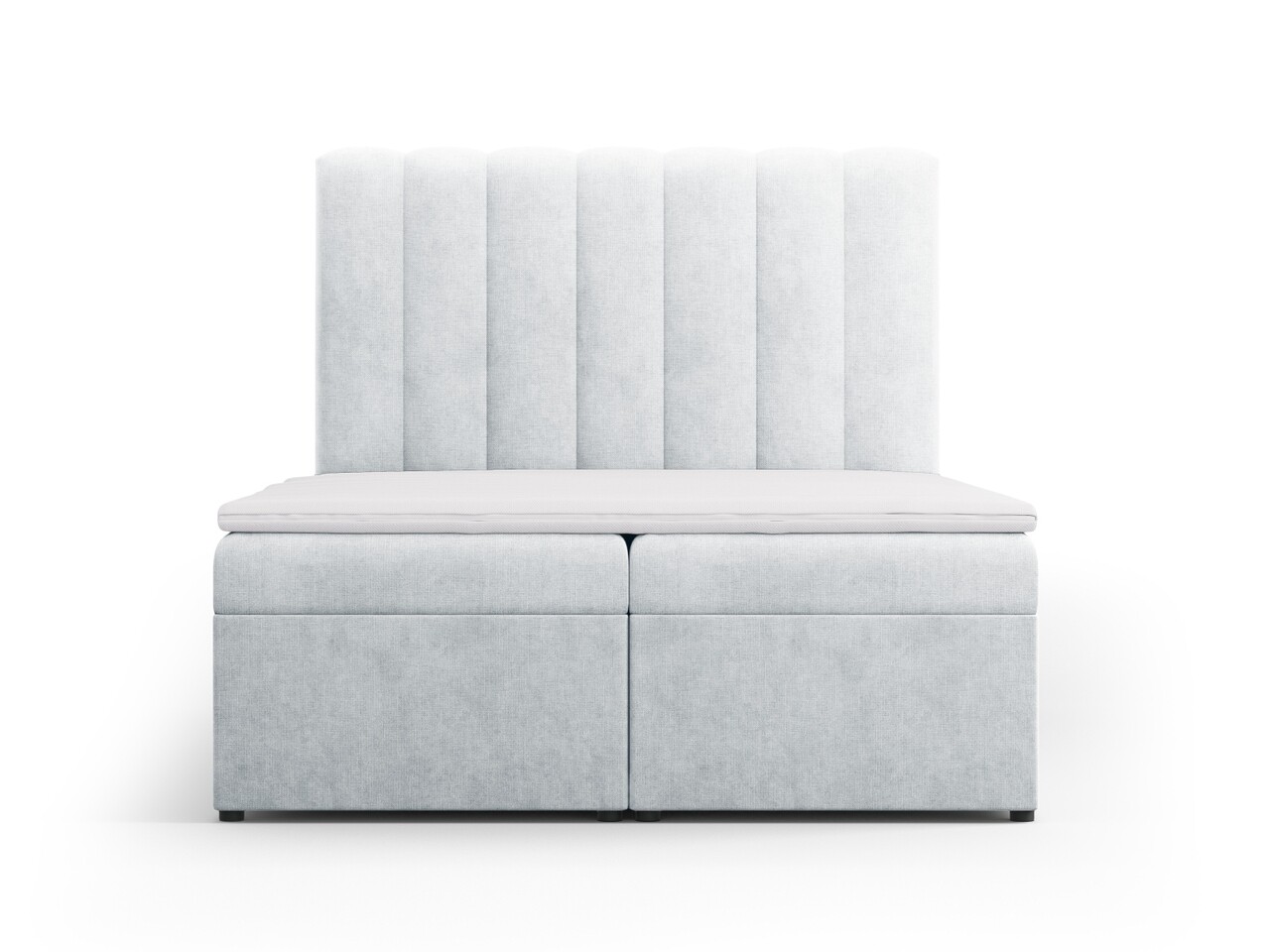 Pat continental cu saltea, topper si lada depozitare, 140x200 cm, Micadoni Home, Kelp-138, tesatura structurata chenille, gri deschis