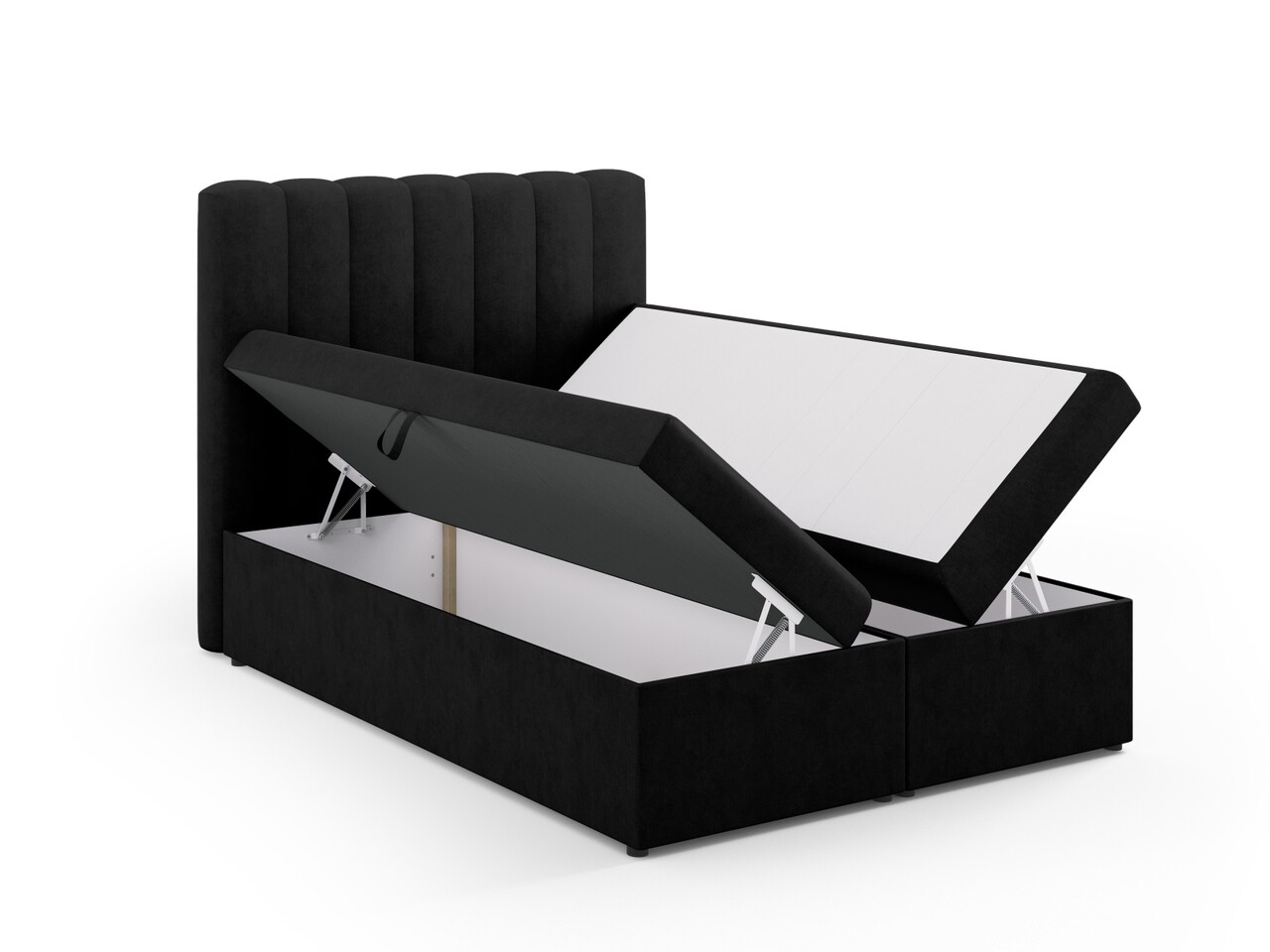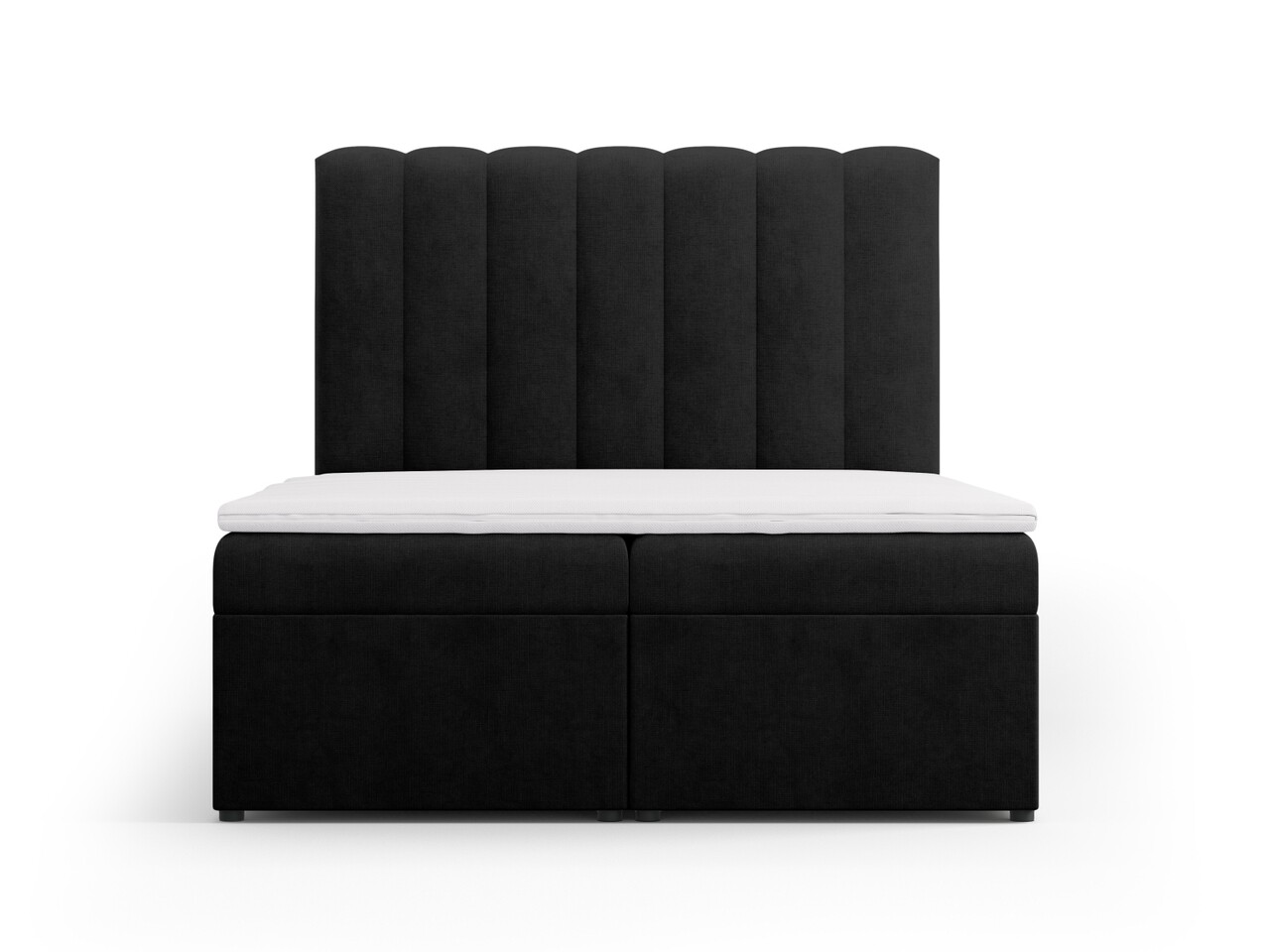 Pat continental cu saltea, topper si lada depozitare, 140x200 cm, Micadoni Home, Kelp-138, tesatura structurata chenille, negru