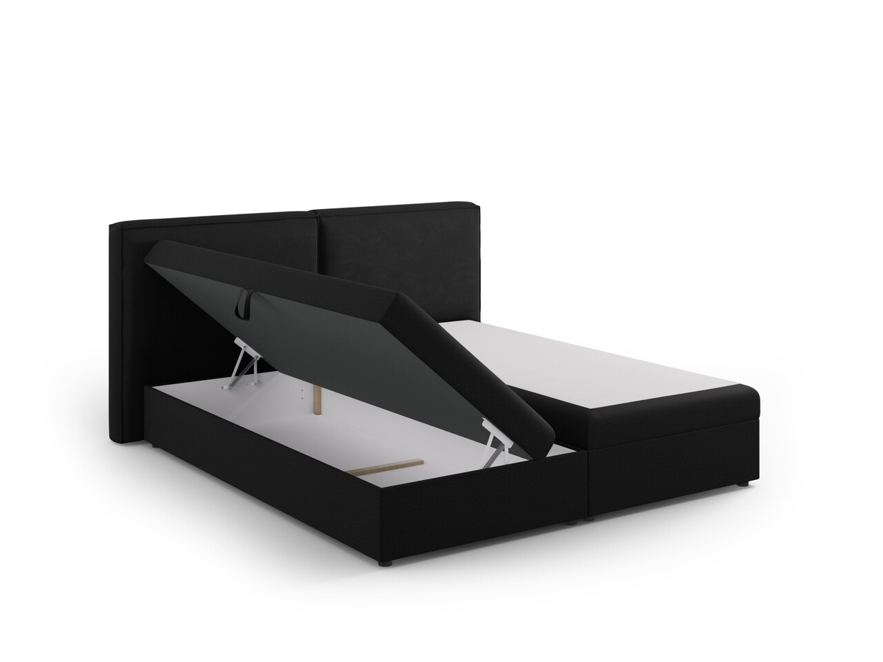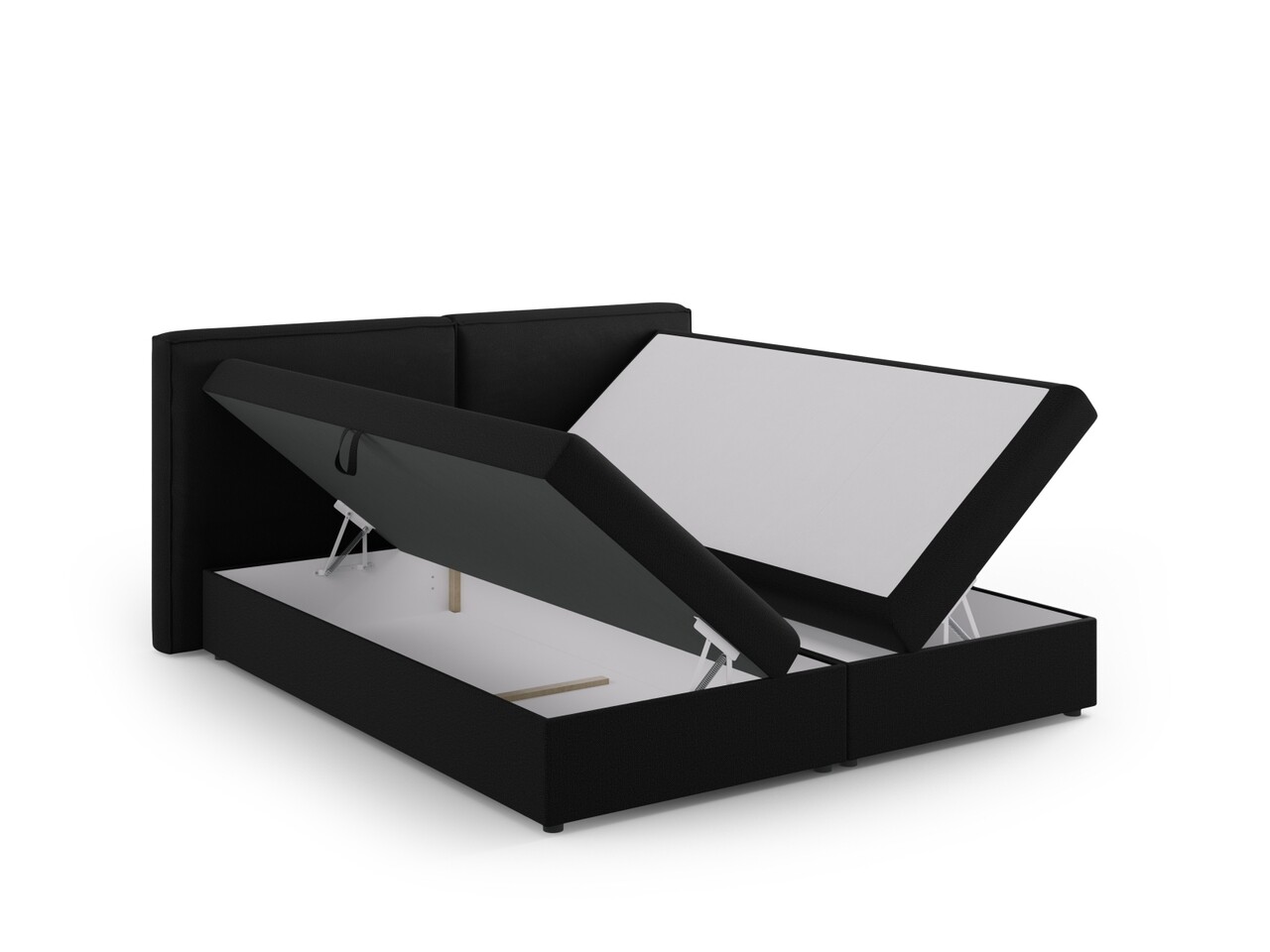 Pat continental cu saltea, topper si lada depozitare, 140x200 cm, Micadoni Home, Jodie-78, tesatura structurata, negru