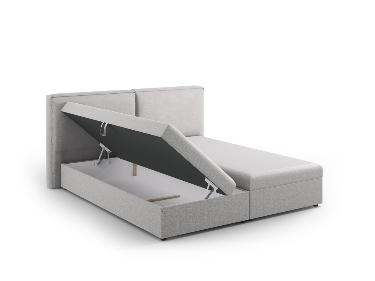 Pat continental cu saltea, topper si lada depozitare, 160x200 cm, Micadoni Home, Jodie-78, tesatura structurata, gri deschis