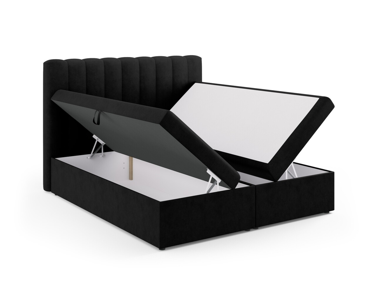 Material structura: cadru din lemn masiv de pin, MDF, arcuri tip pocket, picioare din plastic negru.