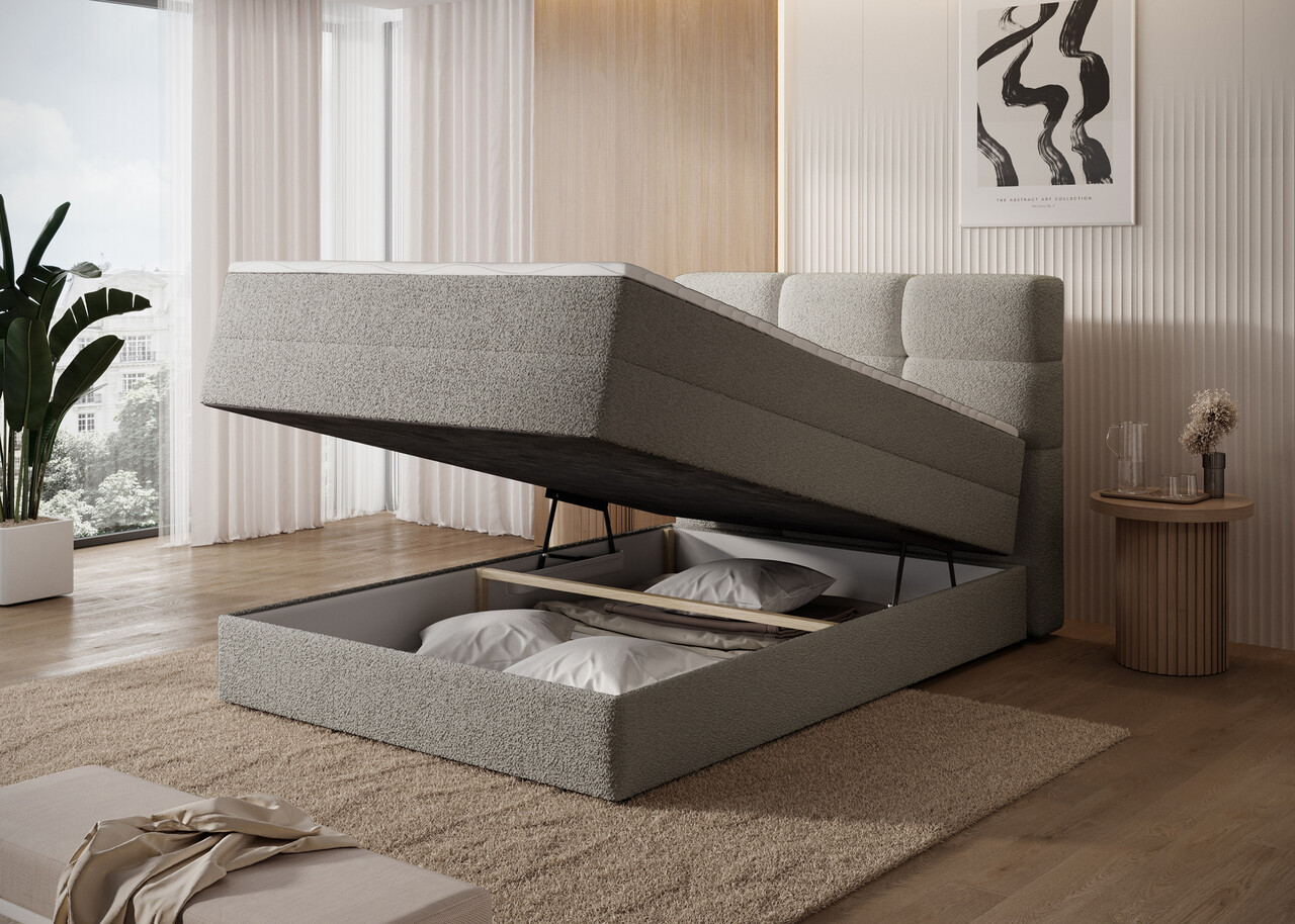Pat continental tapitat cu lada depozitare, 120x200 cm, ELTAP, Kasped, lemn/poliester, bej inchis