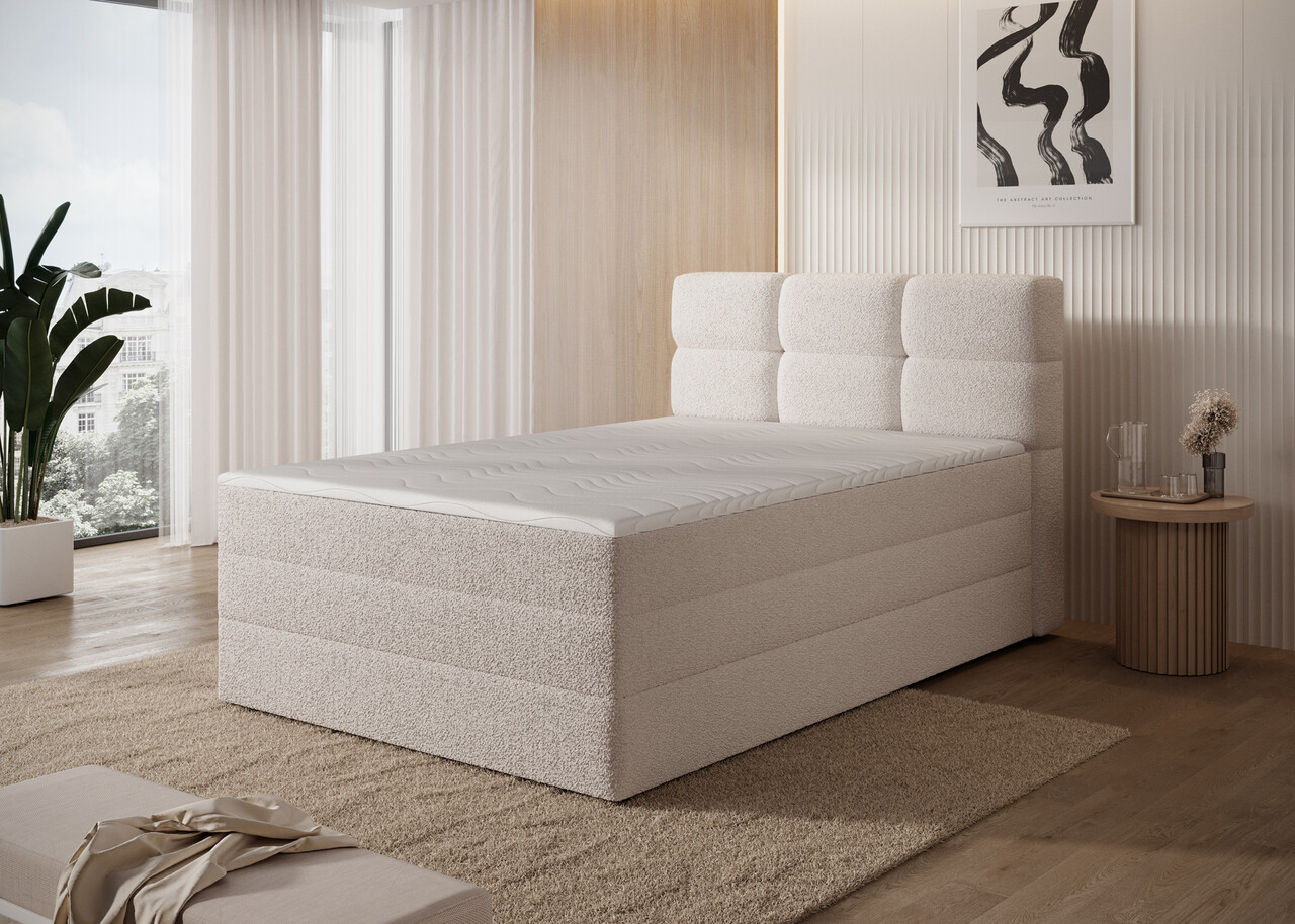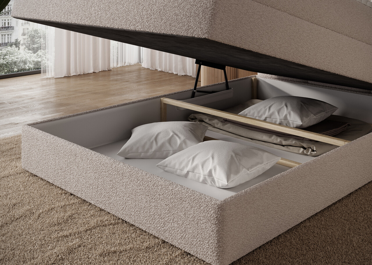 Pat continental tapitat cu lada depozitare, 120x200 cm, ELTAP, Kasped, lemn/poliester, bej deschis