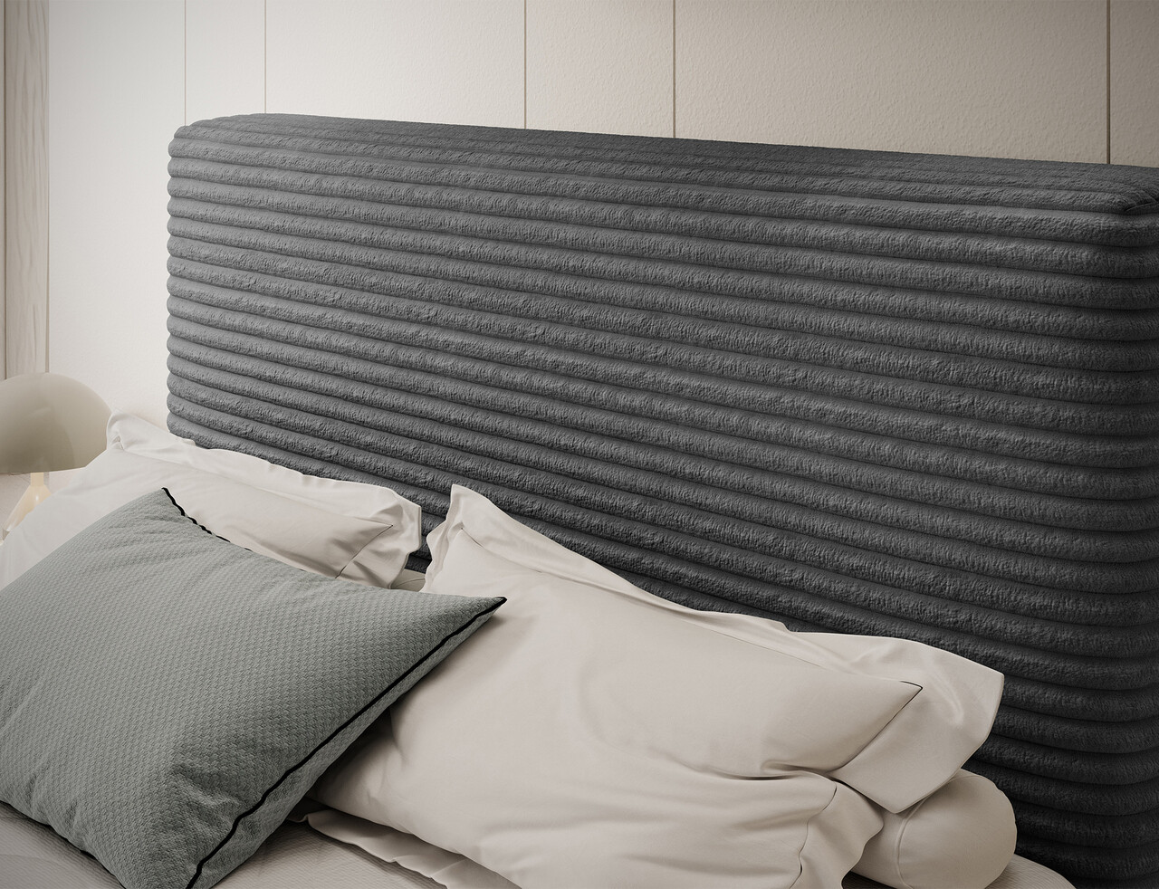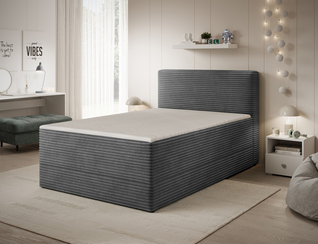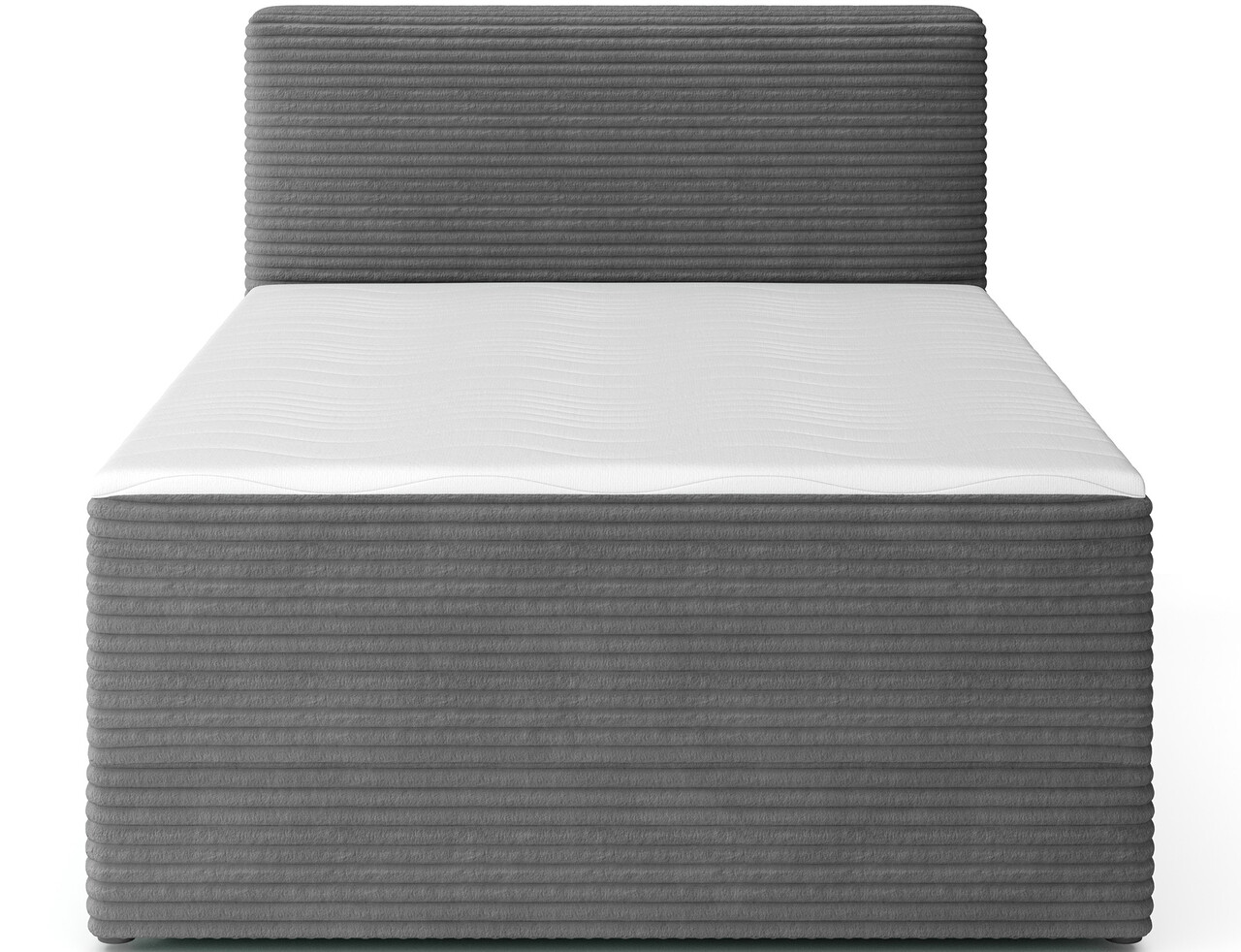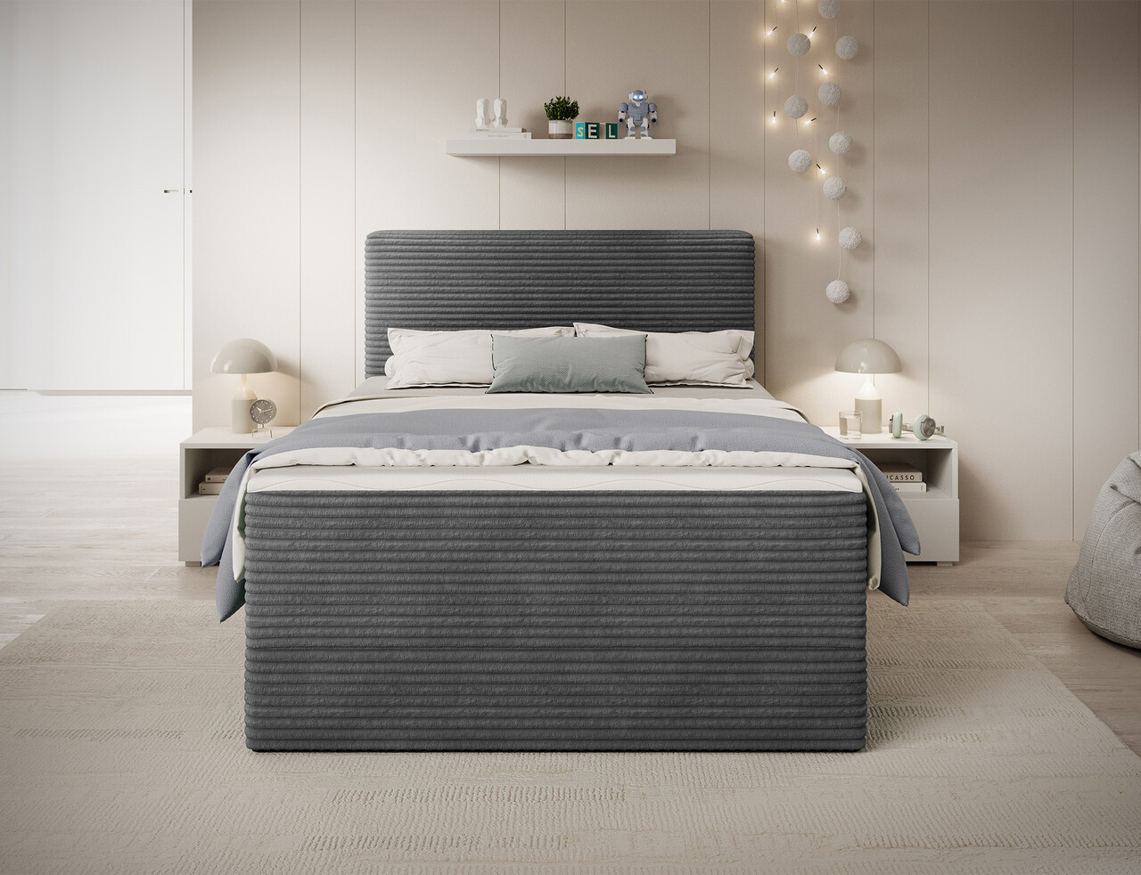 Pat continental tapitat cu lada depozitare, 140x200 cm, ELTAP, Alamito, lemn/poliester, gri inchis