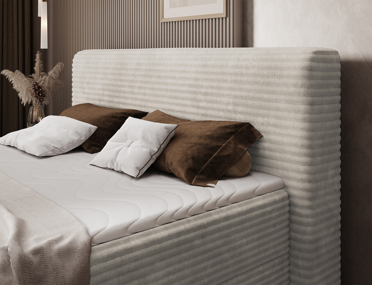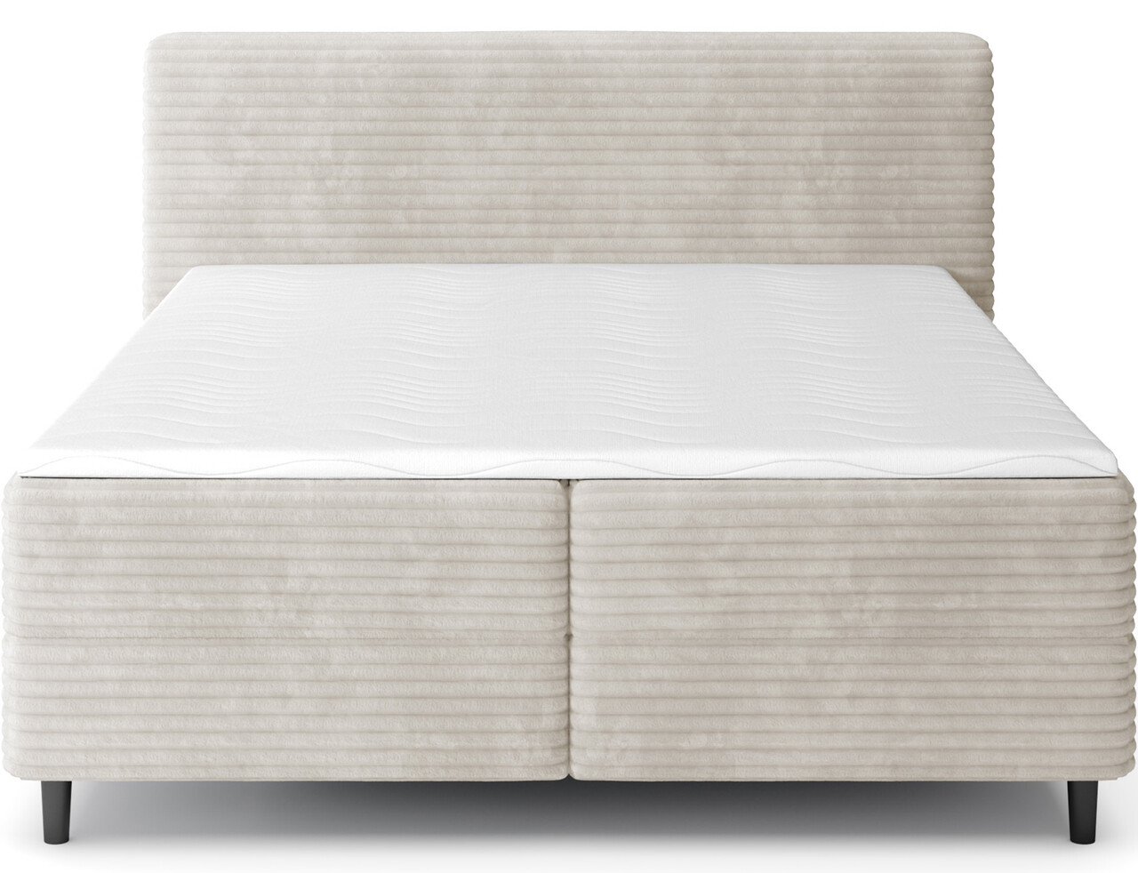 Pat continental tapitat cu lada depozitare, 140x200 cm, ELTAP, Cortiko, lemn/poliester, bej deschis