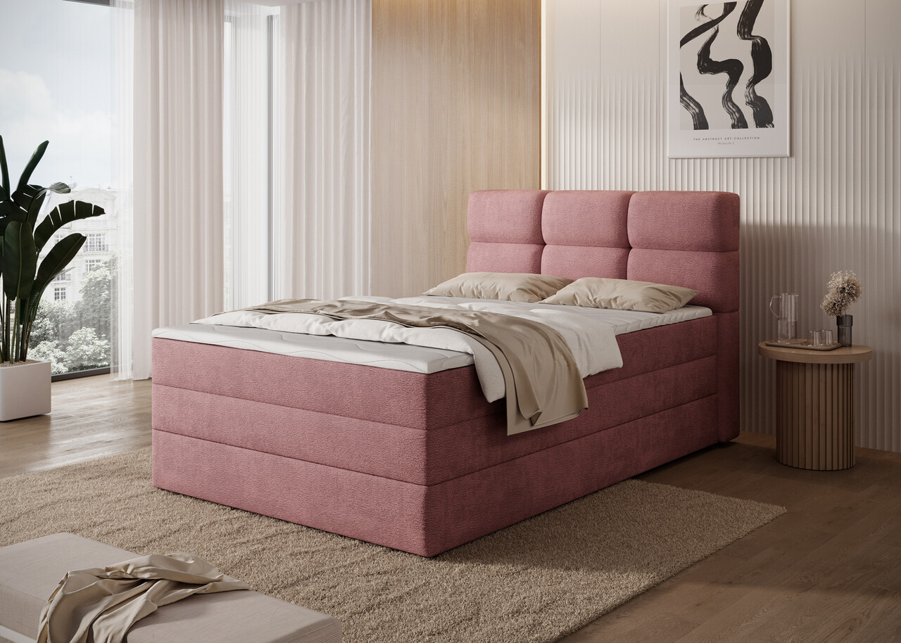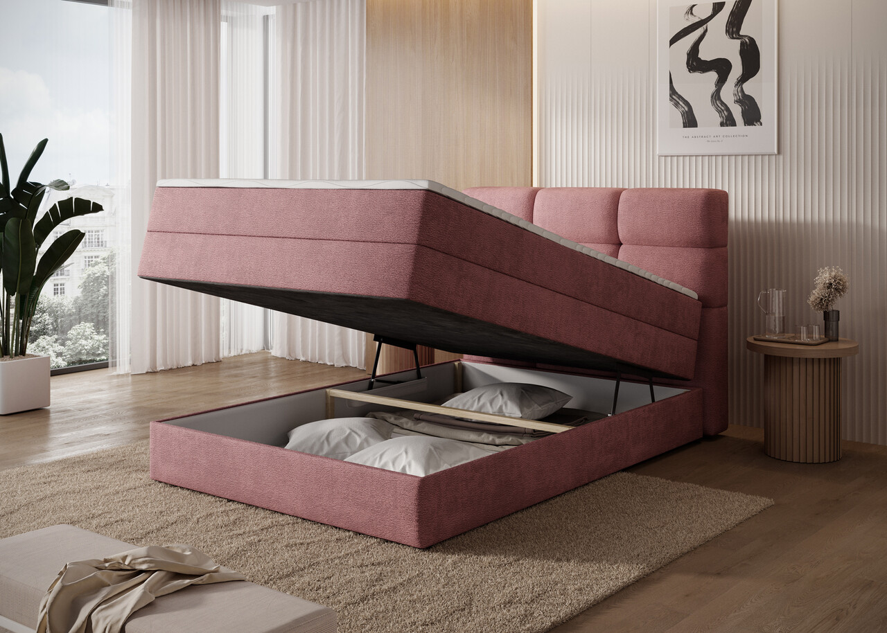 Pat continental tapitat cu lada depozitare, 140x200 cm, ELTAP, Kasped, lemn/poliester, roz