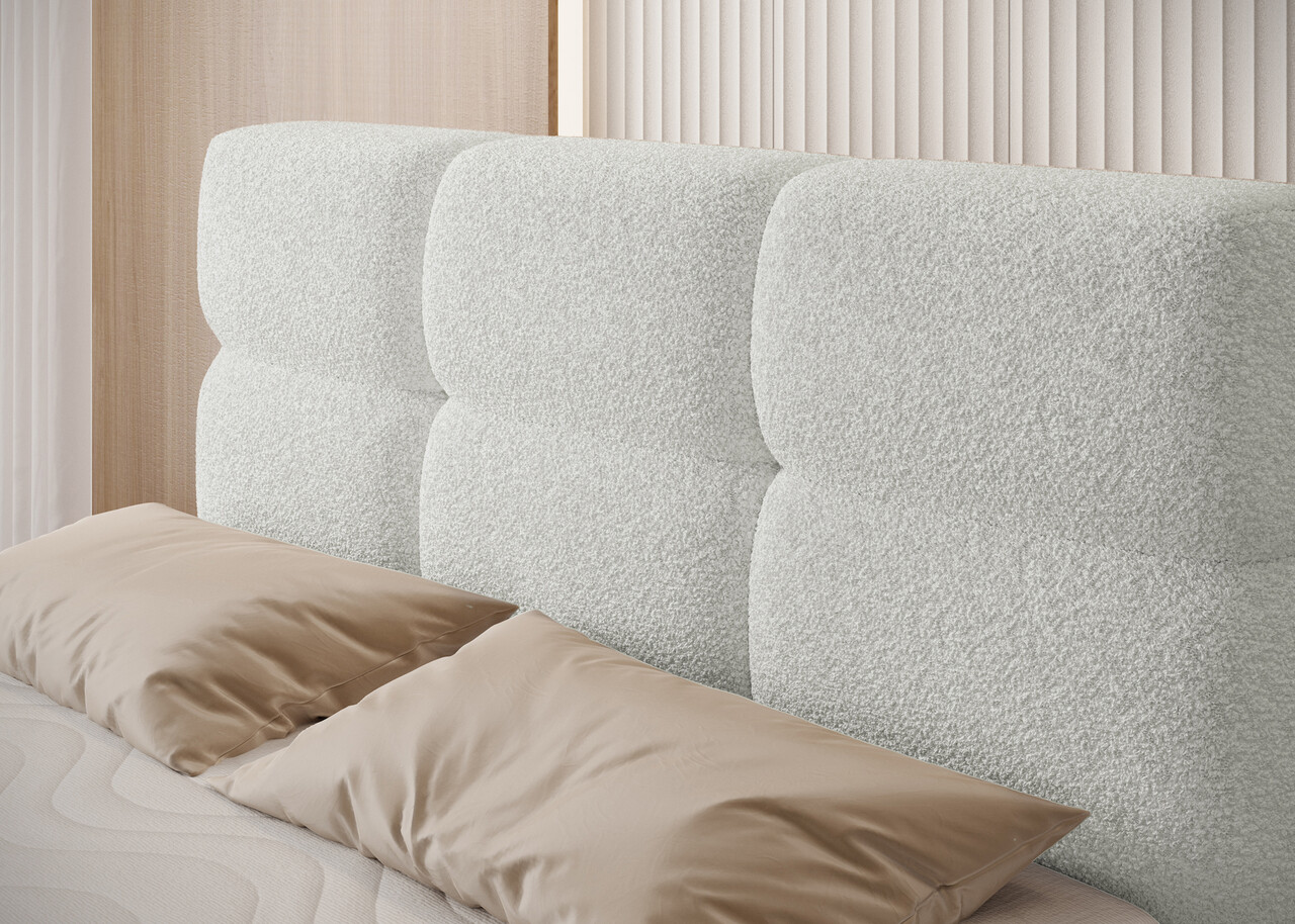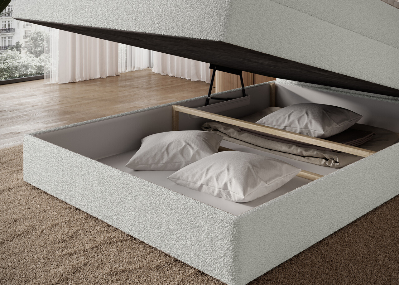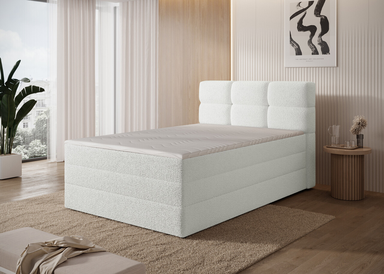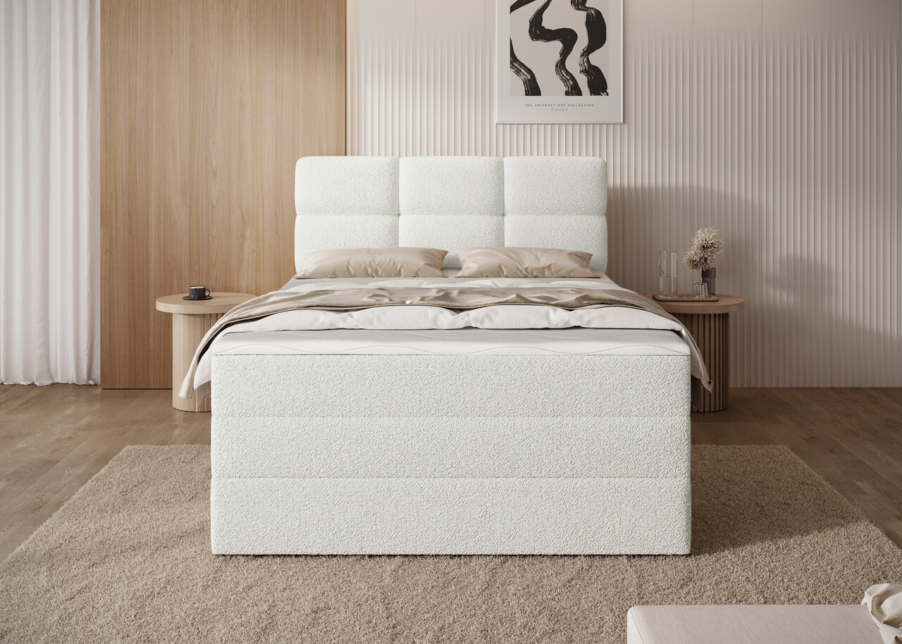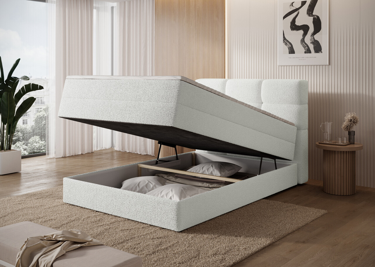 Pat continental tapitat cu lada depozitare, 140x200 cm, ELTAP, Kasped, lemn/poliester, alb