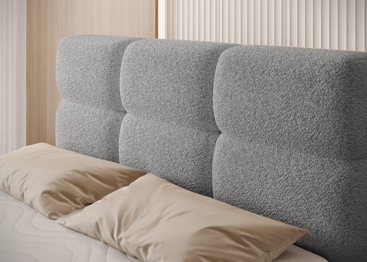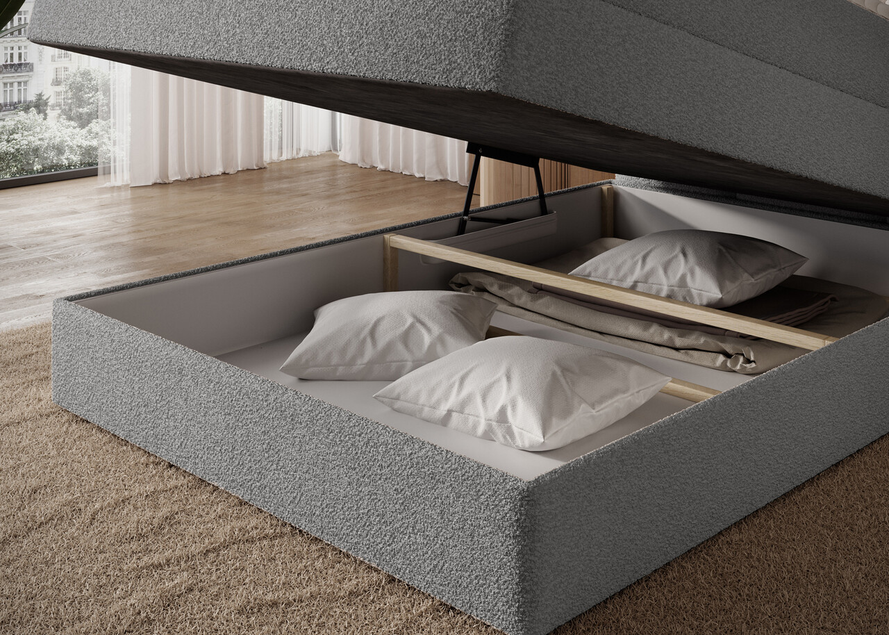 Pat continental tapitat cu lada depozitare, 140x200 cm, ELTAP, Kasped, lemn/poliester, gri deschis
