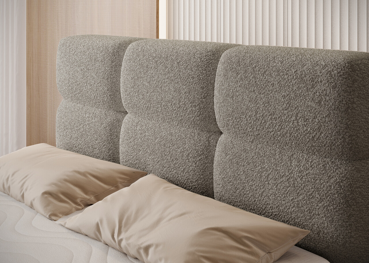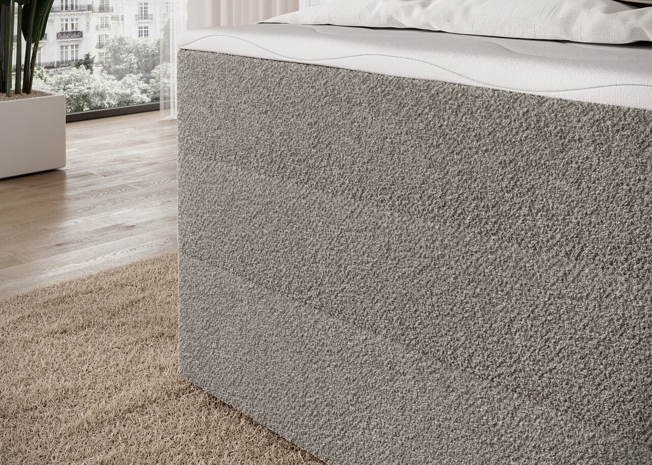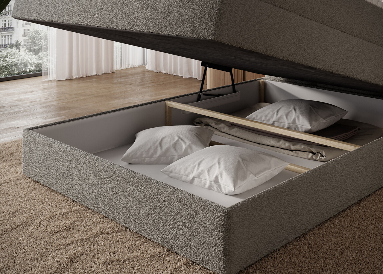 Pat continental tapitat cu lada depozitare, 140x200 cm, ELTAP, Kasped, lemn/poliester, bej inchis