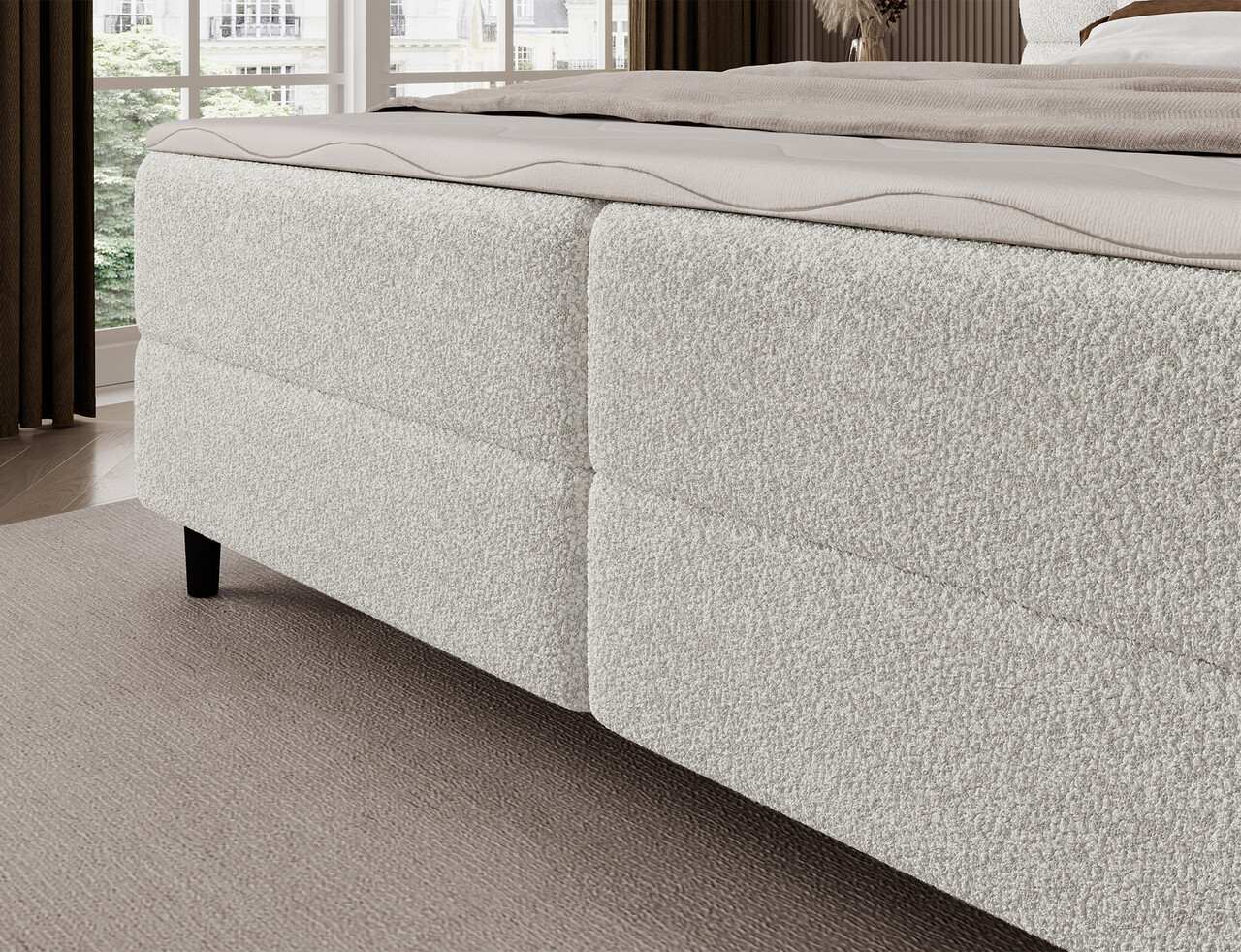 Pat continental tapitat cu lada depozitare, 160x200 cm, ELTAP, Camma, lemn/poliester, alb