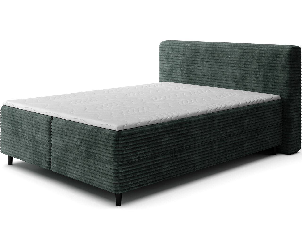 Pat continental tapitat cu lada depozitare, 160x200 cm, ELTAP, Cortiko, lemn/poliester, verde