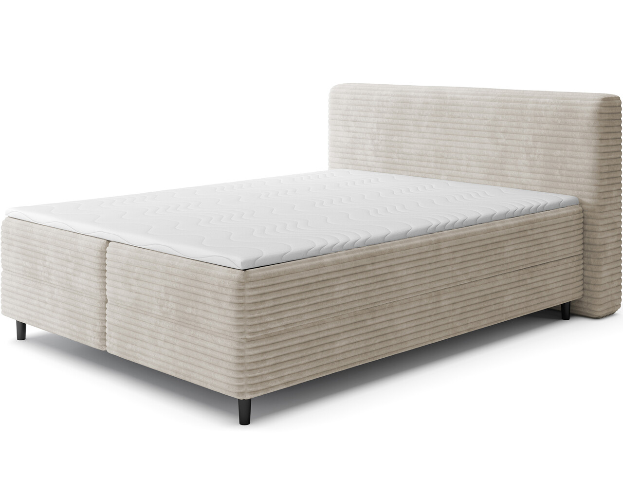 Pat continental tapitat cu lada depozitare, 160x200 cm, ELTAP, Cortiko, lemn/poliester, bej deschis
