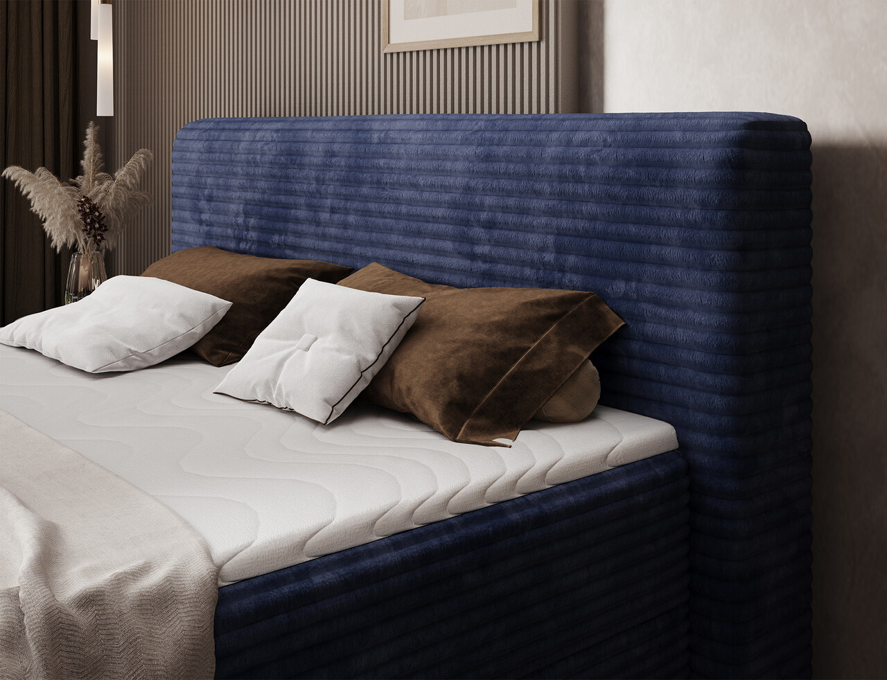 Pat continental tapitat cu lada depozitare, 180x200 cm, ELTAP, Cortiko, lemn/poliester, albastru