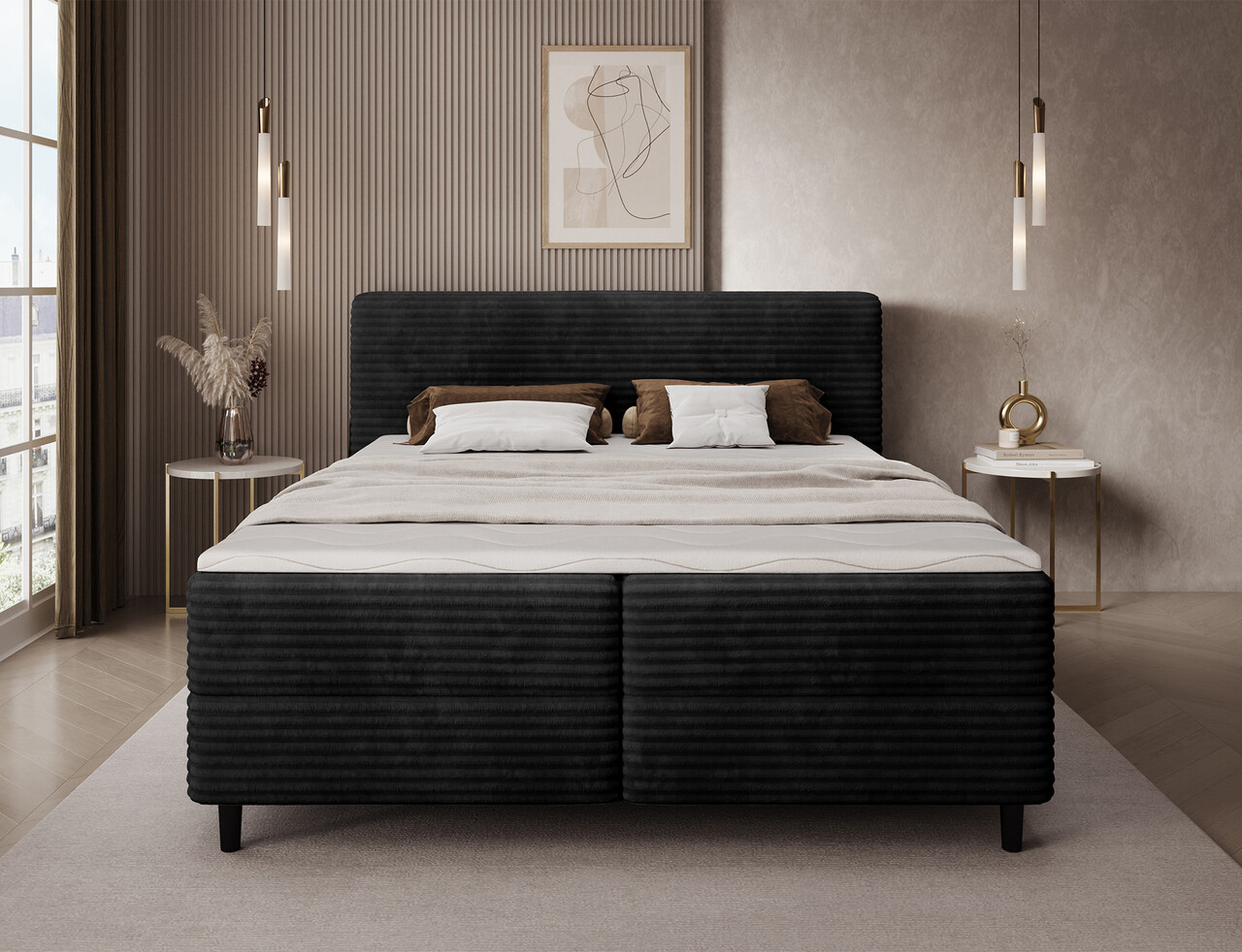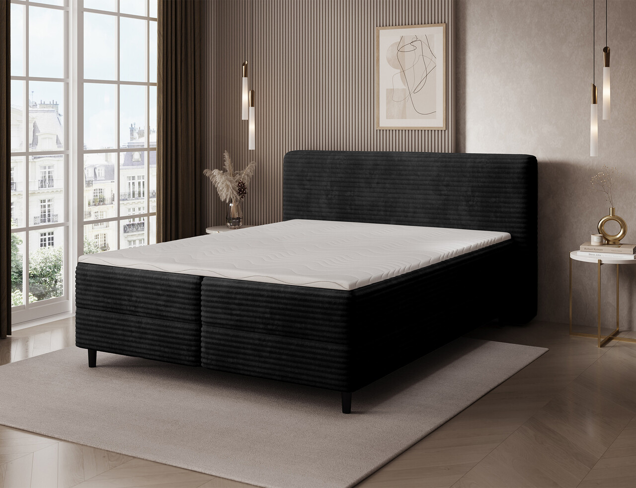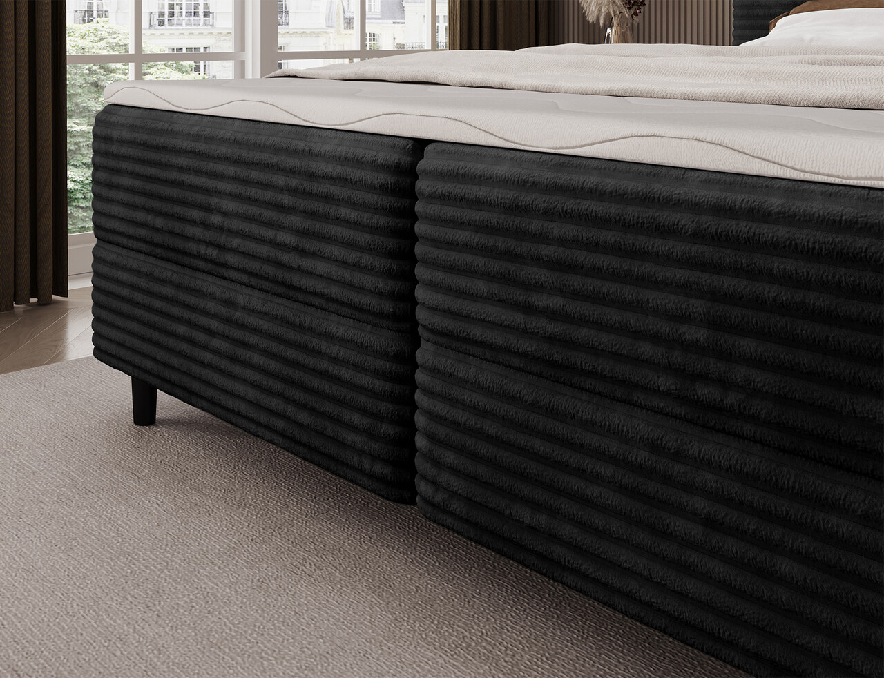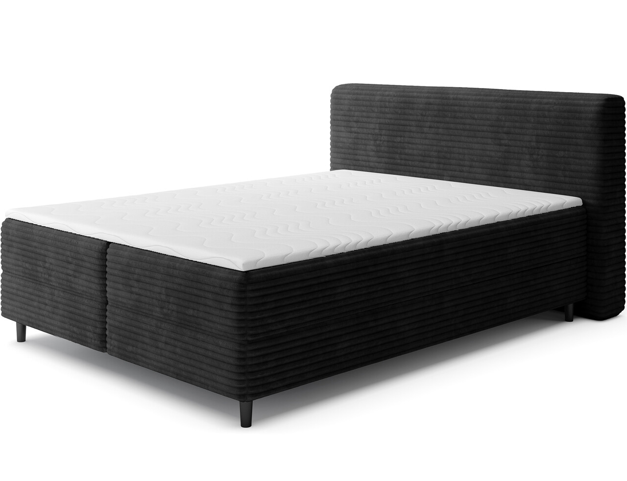 Pat continental tapitat cu lada depozitare, 180x200 cm, ELTAP, Cortiko, lemn/poliester, negru