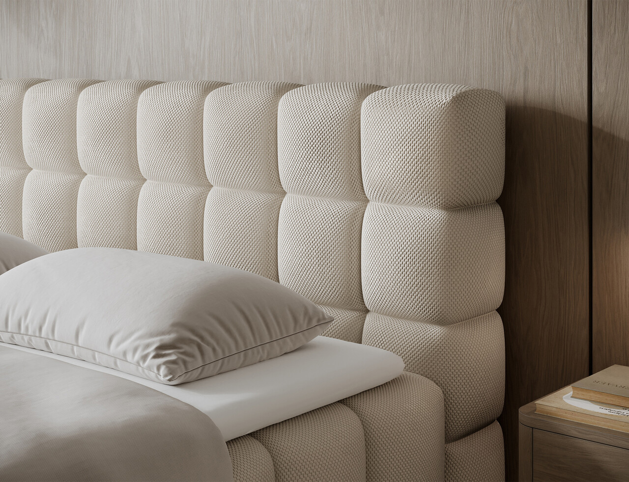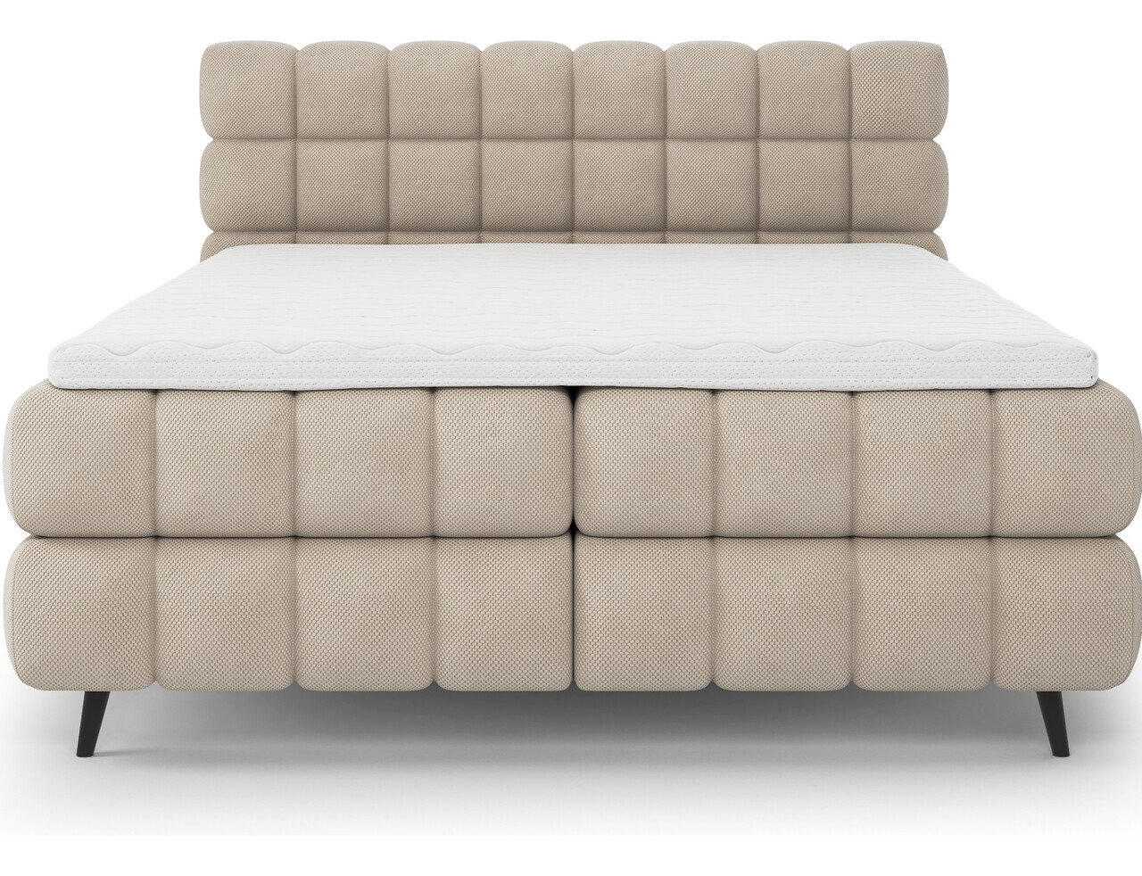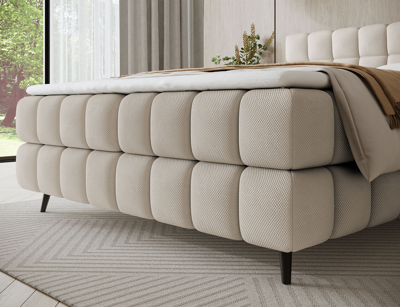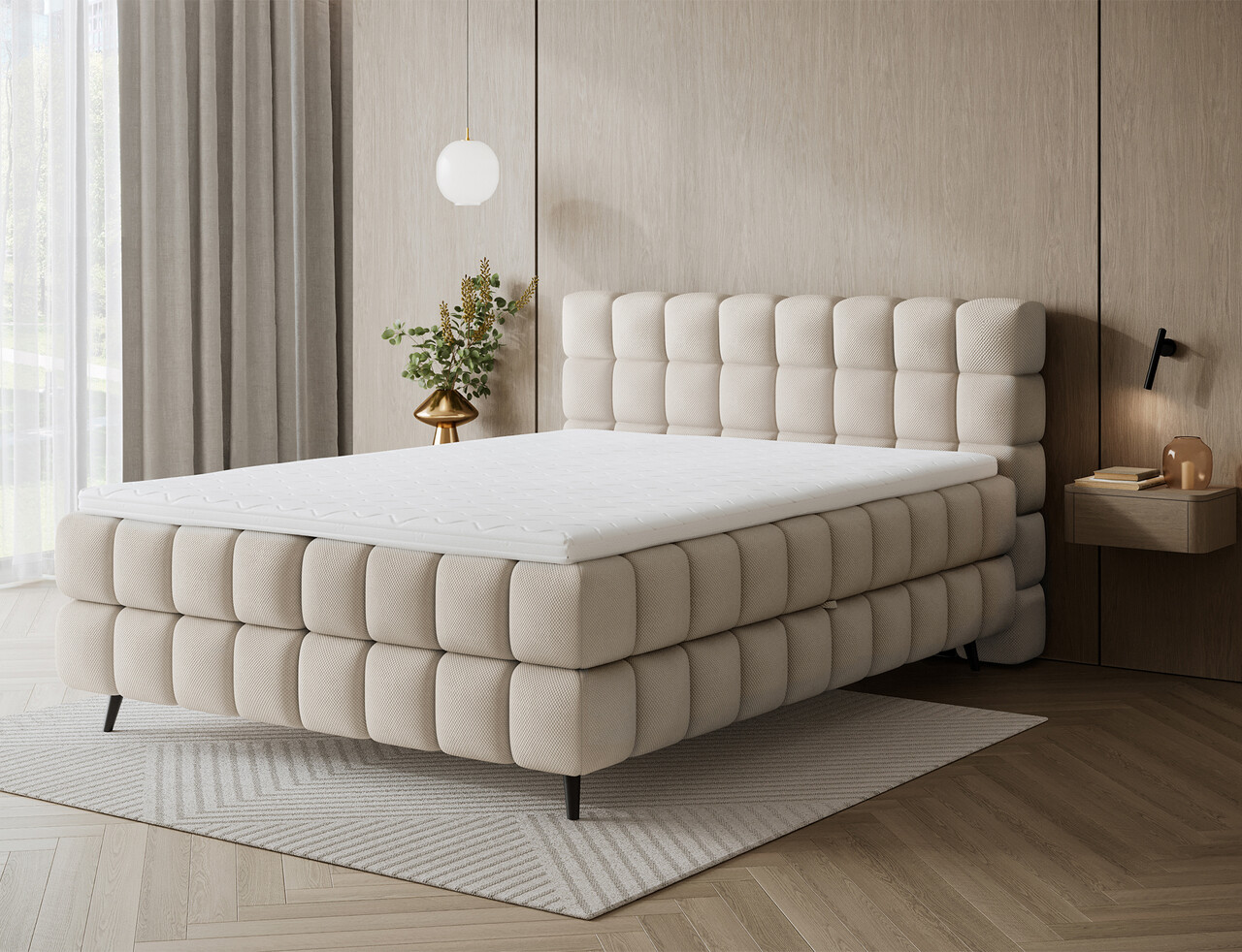 Pat continental tapitat cu lada depozitare, 180x200 cm, ELTAP, Sabeno, lemn/poliester, bej