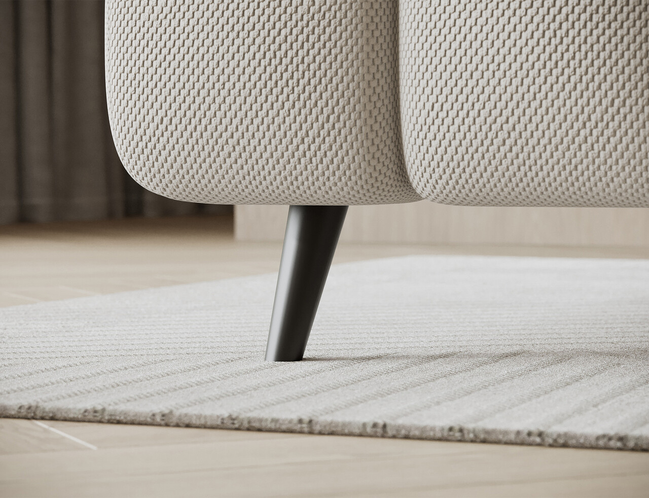 Picioare din lemn de culoare neagra.