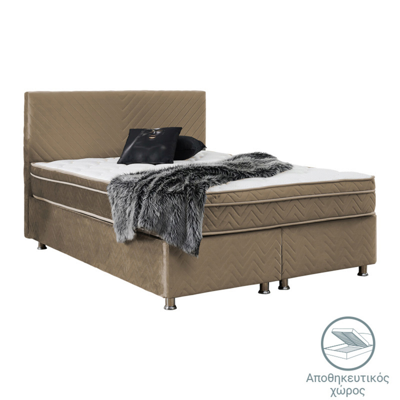 Pat cu somiera rabatabila Rizko, Pakoworld, 160x200 cm, PAL/textil, maro