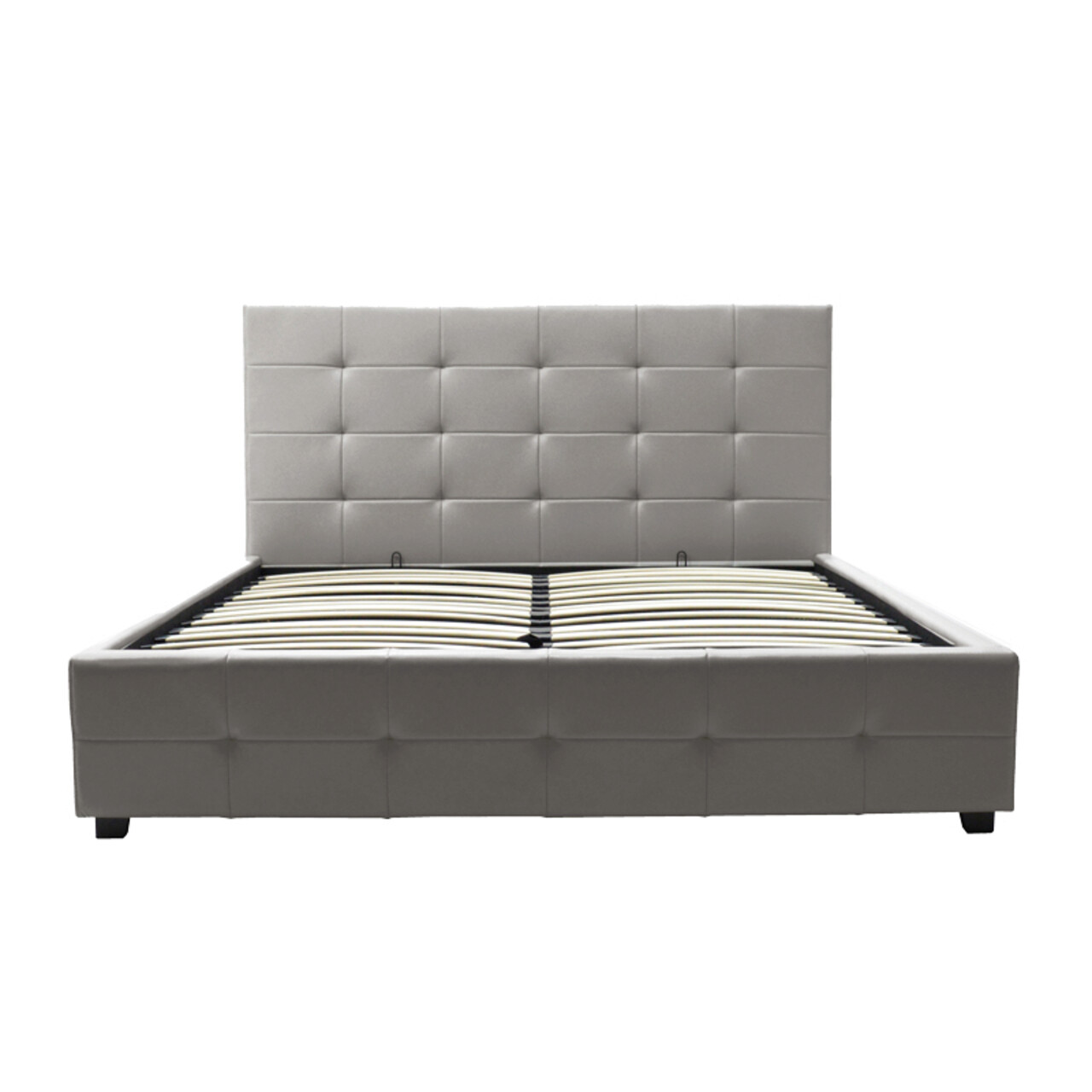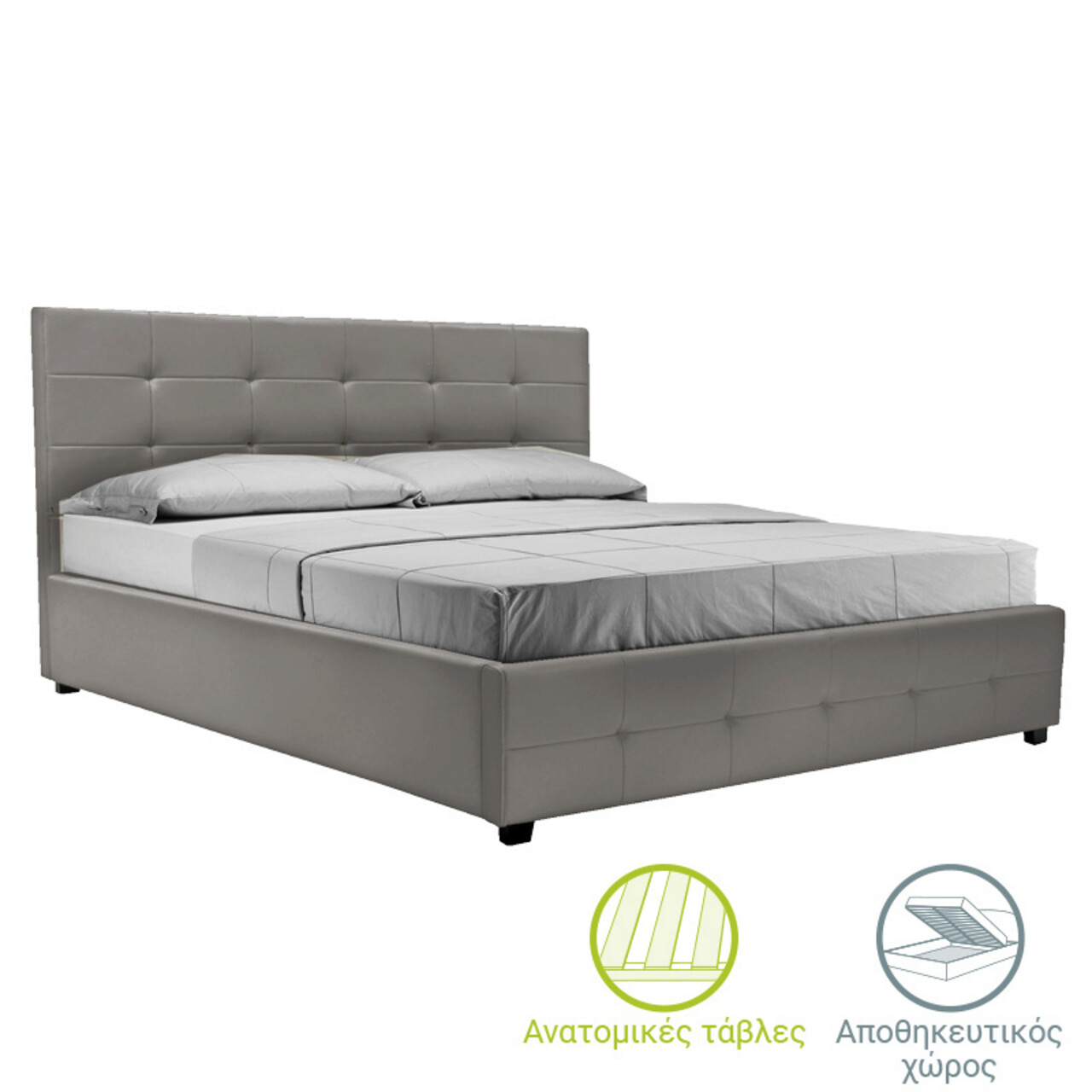 Pat cu somiera rabatabila Roi, Pakoworld, 160x200 cm, piele ecologica, gri mat