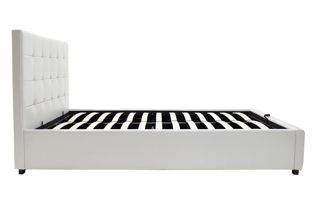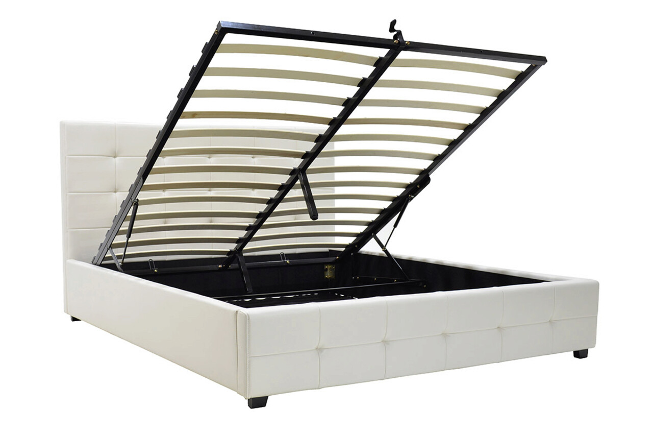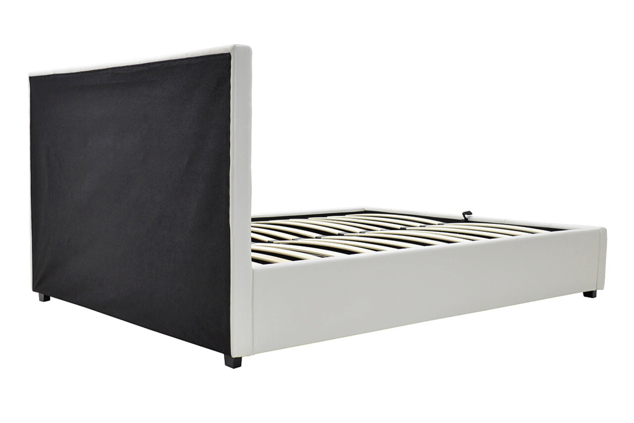 Pat cu somiera rabatabila Roi, Pakoworld, 160x200 cm, piele ecologica, alb mat