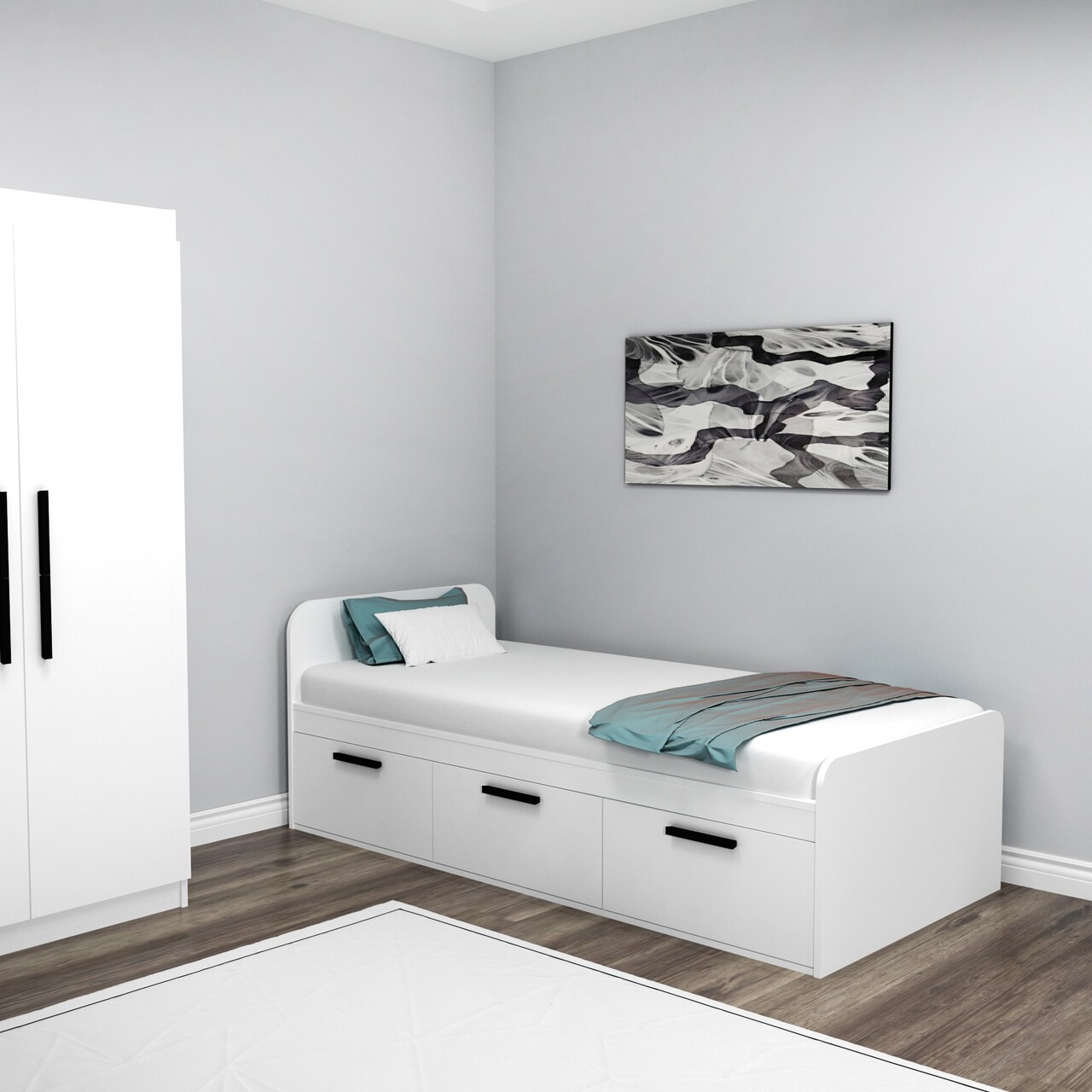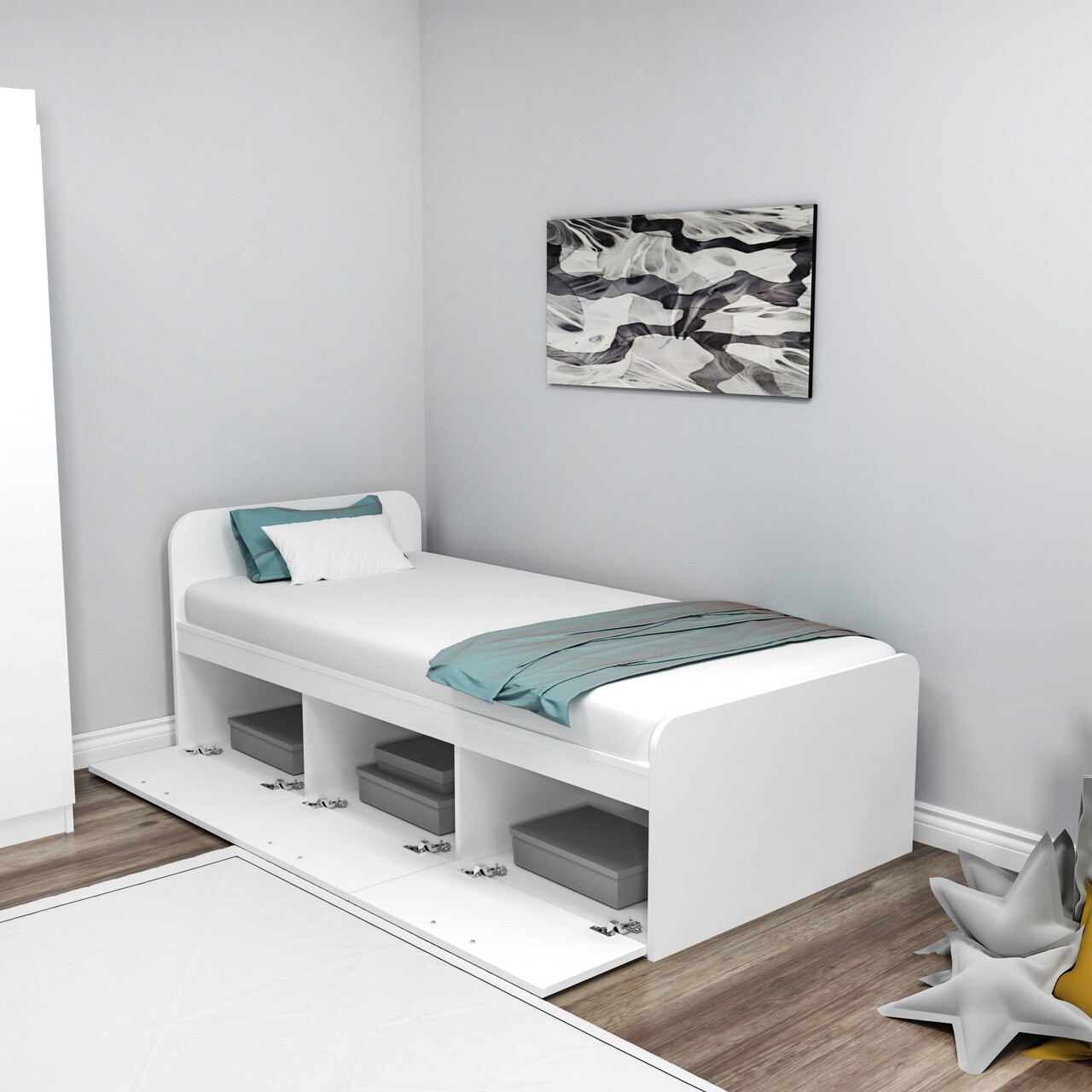 Pat de o persoană, Arnetti, Akser, 91x71 cm, PAL, Alb