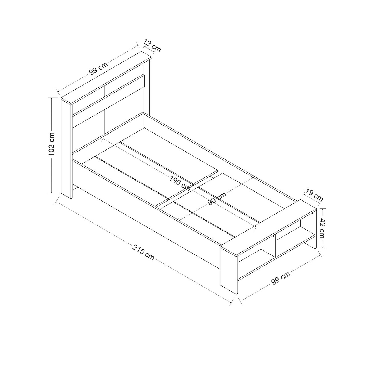 Pat de o persoană, Inarch, Life, 99x102x215 cm, PAL, Alb
