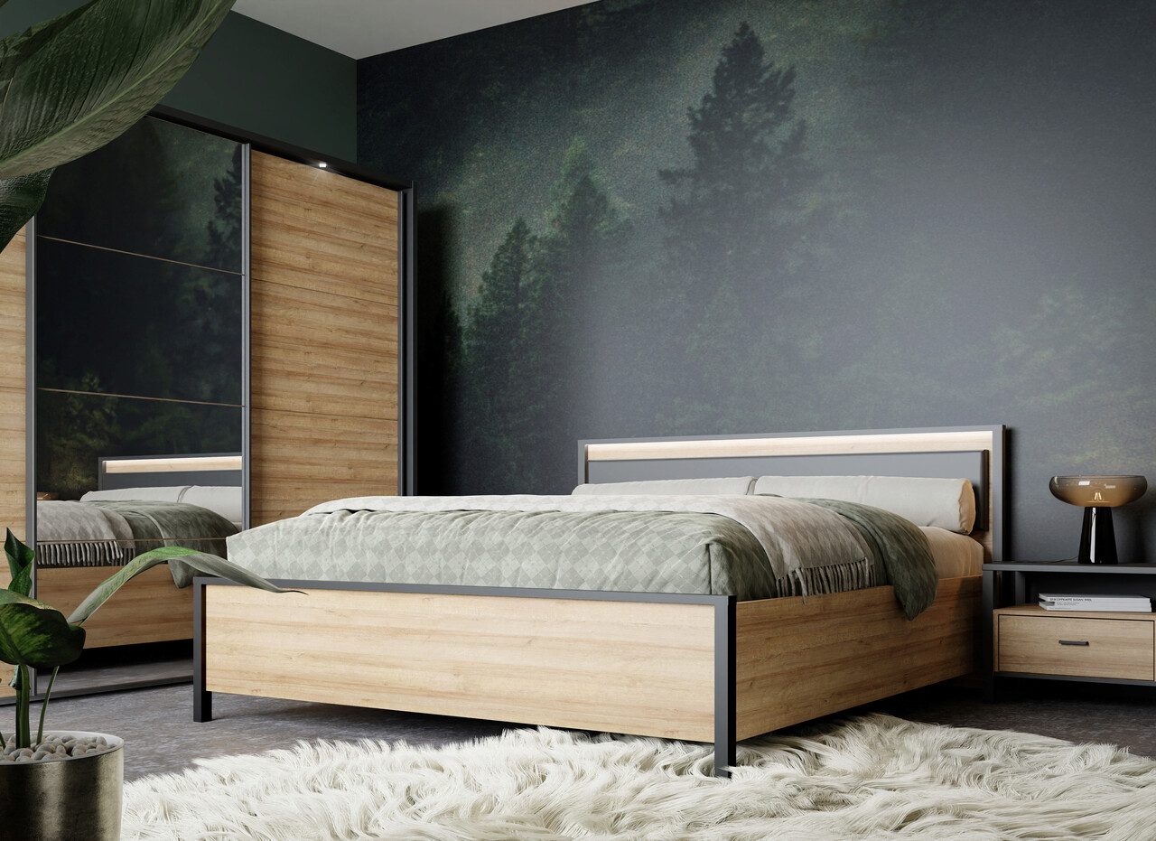 Pat Heusden, Bedora, 168.1x207.1x98.7 cm, PAL, negru/stejar