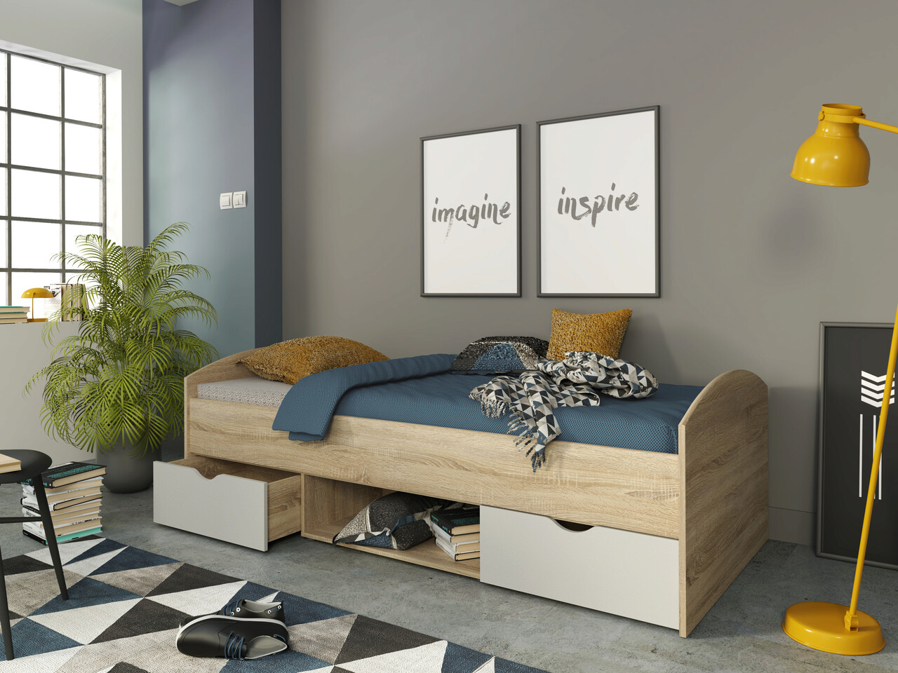 Pat Lisse, Bedora, 96x203.6x65 cm, PAL, stejar/alb
