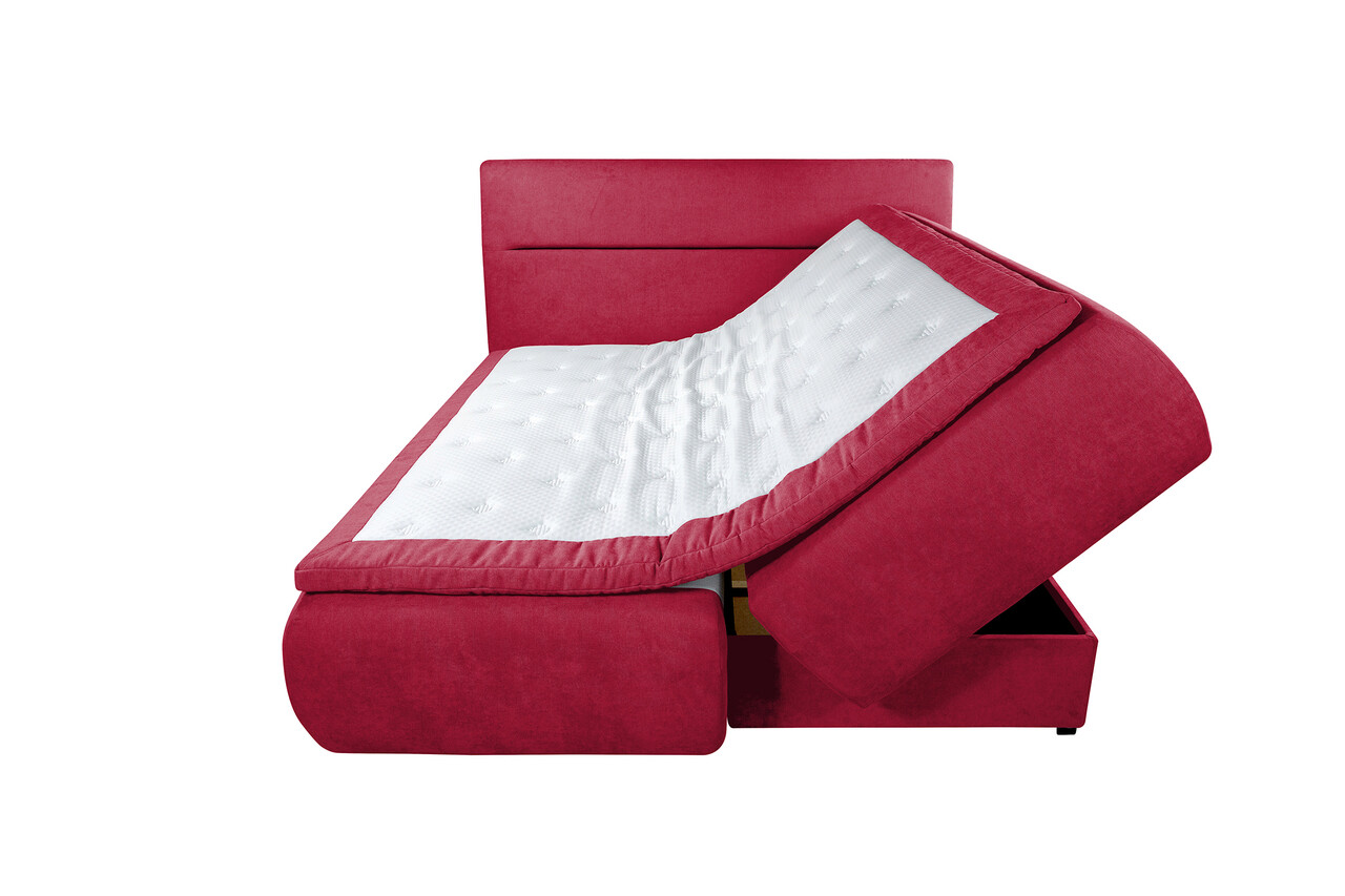 Pat matrimonial, Bergen Memory, 140x200 cm, cu spatiu pentru depozitare, Rosu