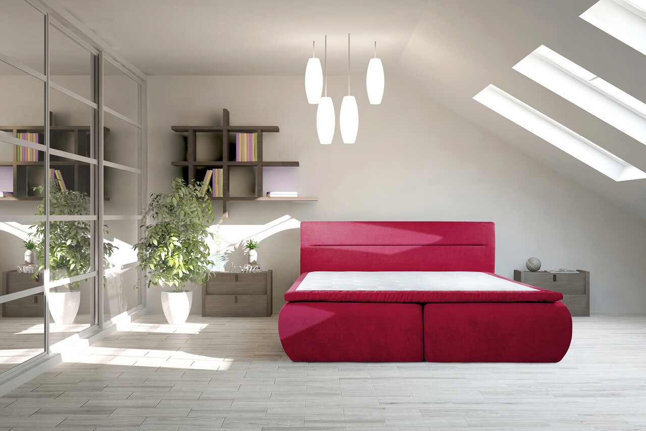 Pat matrimonial, Bergen Memory, 180x200 cm, cu spatiu pentru depozitare, Rosu