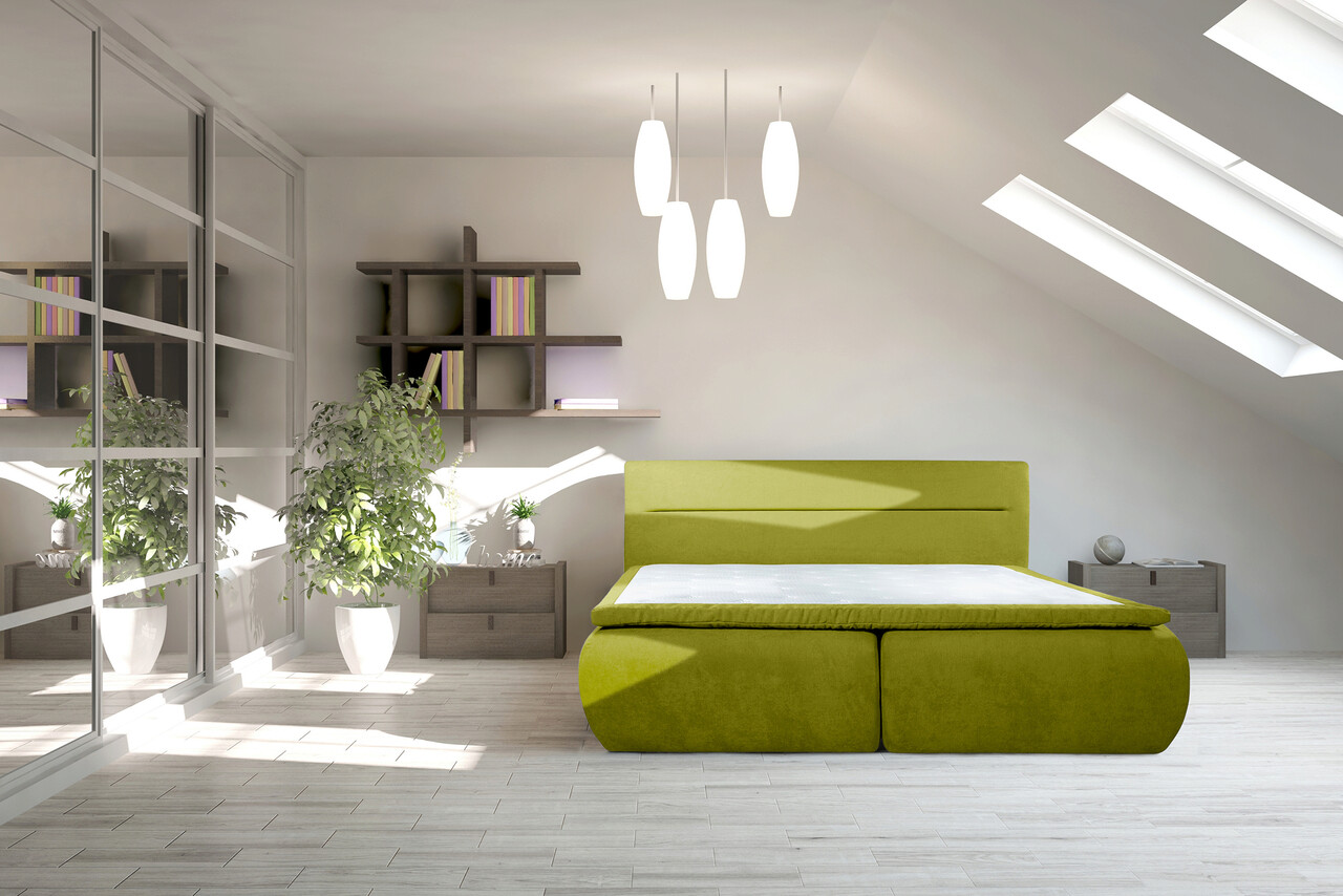 Pat matrimonial, Bergen Memory, 180x200 cm, cu spatiu pentru depozitare, Verde