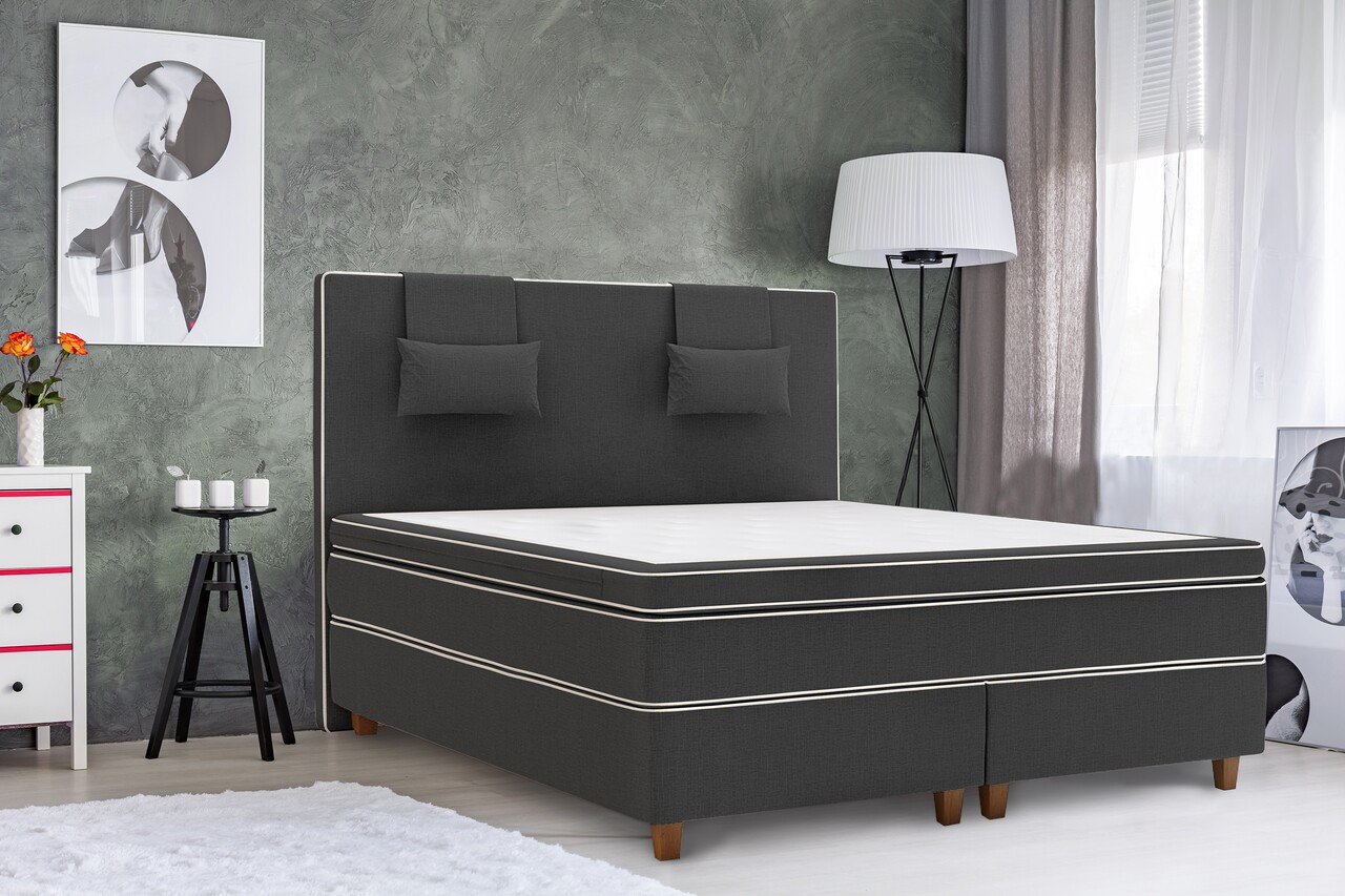 Pat matrimonial, Luxury Stockholm, 180x200 cm, saltea tip Pocket, topper latex, Antracit