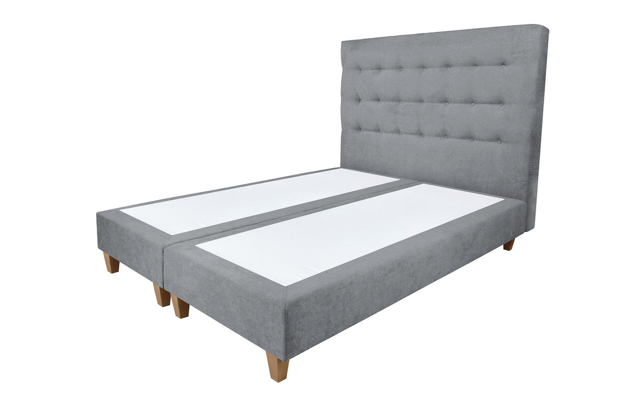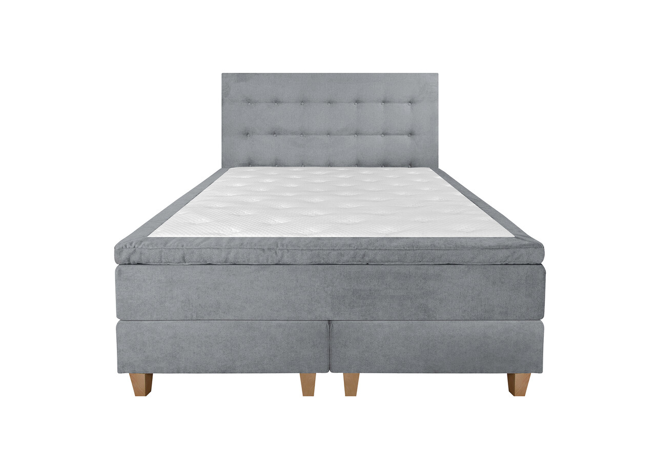 Pat matrimonial, Stockholm, Buttons E, 140x200 cm, saltea tip Pocket, topper memory, Gri