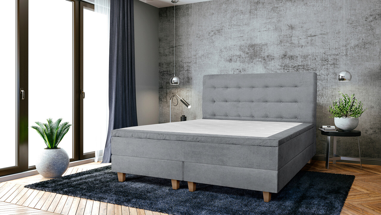 Pat matrimonial, Stockholm, Buttons E, 160x200 cm, saltea tip Pocket, topper memory, Gri