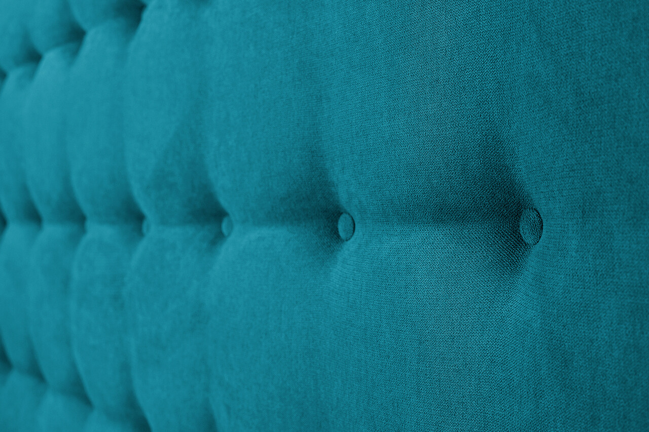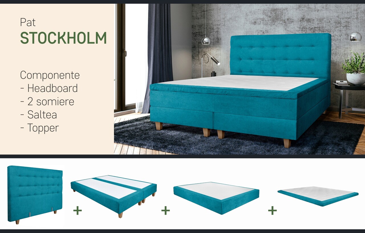 Pat matrimonial, Stockholm, Buttons E, 160x200 cm, saltea tip Pocket, topper memory, Turcoaz