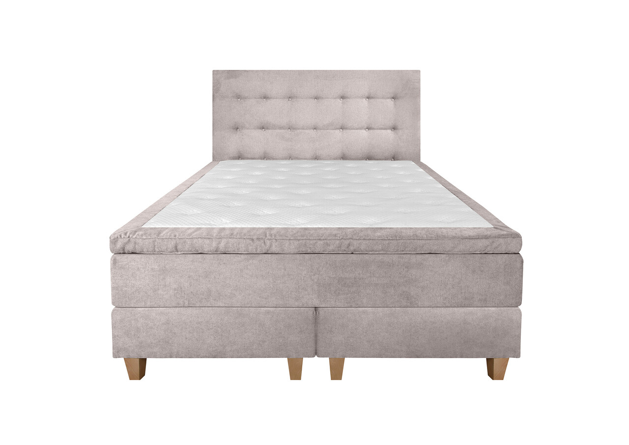 Pat matrimonial, Stockholm, Buttons E, 160x200 cm, saltea tip Pocket, topper memory, Taupe