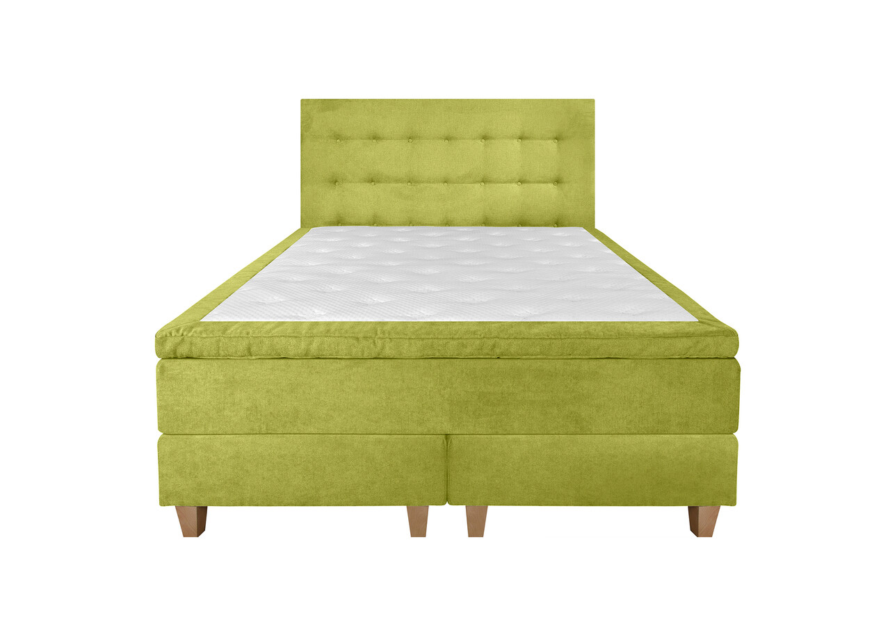 Pat matrimonial, Stockholm, Buttons E, 180x200 cm, saltea tip Pocket, topper memory, Verde