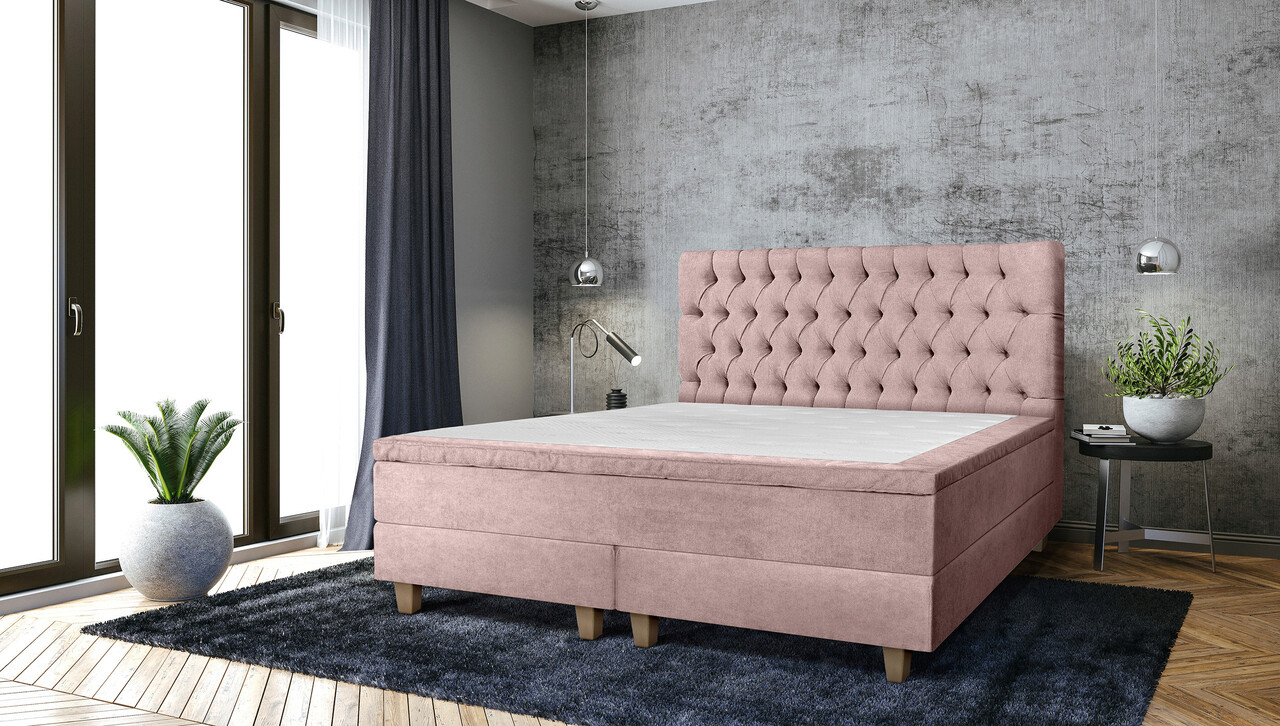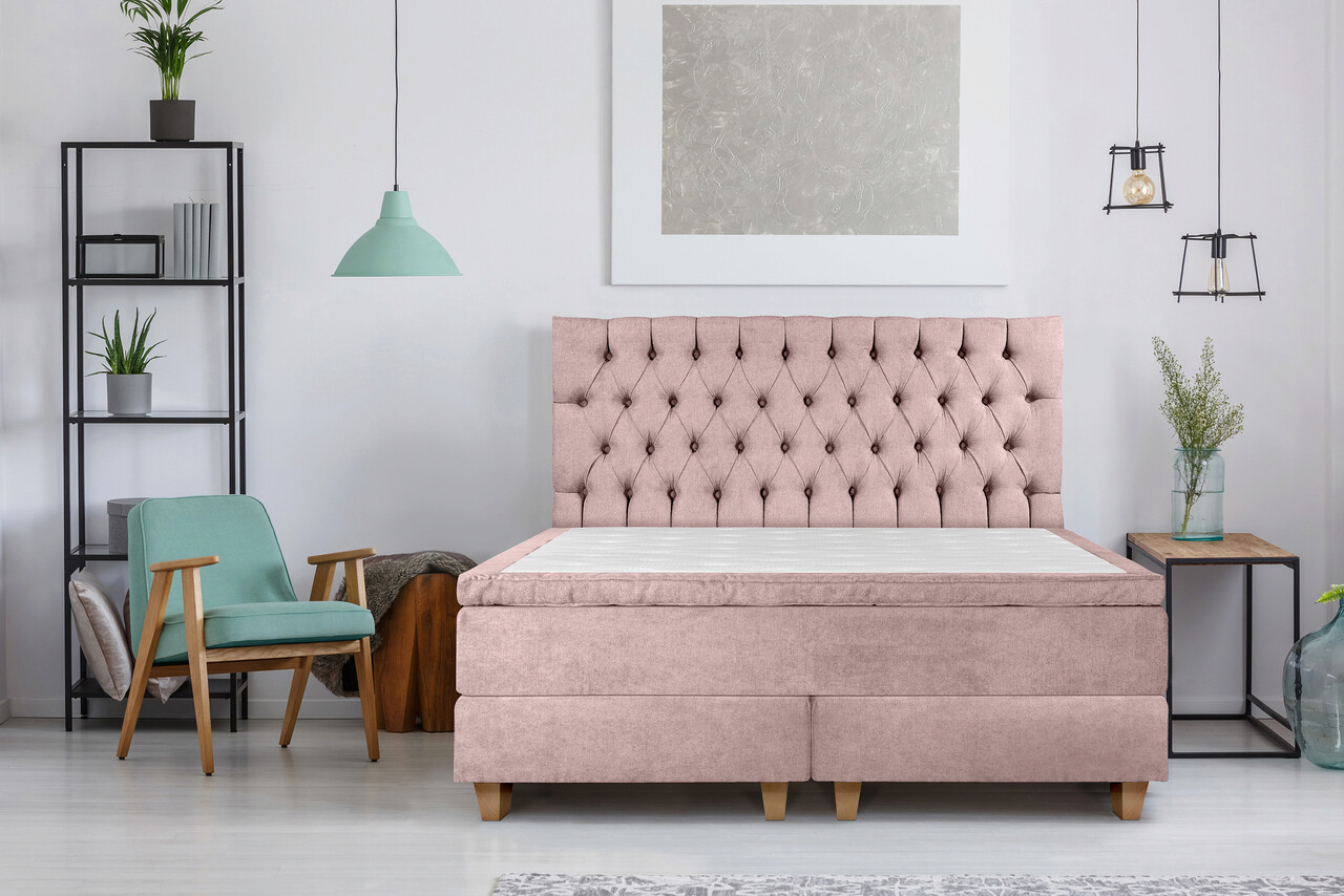 Pat matrimonial, Stockholm, Chester E, 160x200 cm, saltea tip Pocket, topper memory, Roz pudra