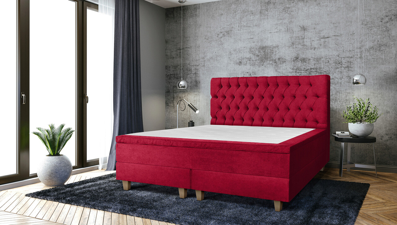 Pat matrimonial, Stockholm, Chester E, 180x200 cm, saltea tip Pocket, topper memory, Rosu