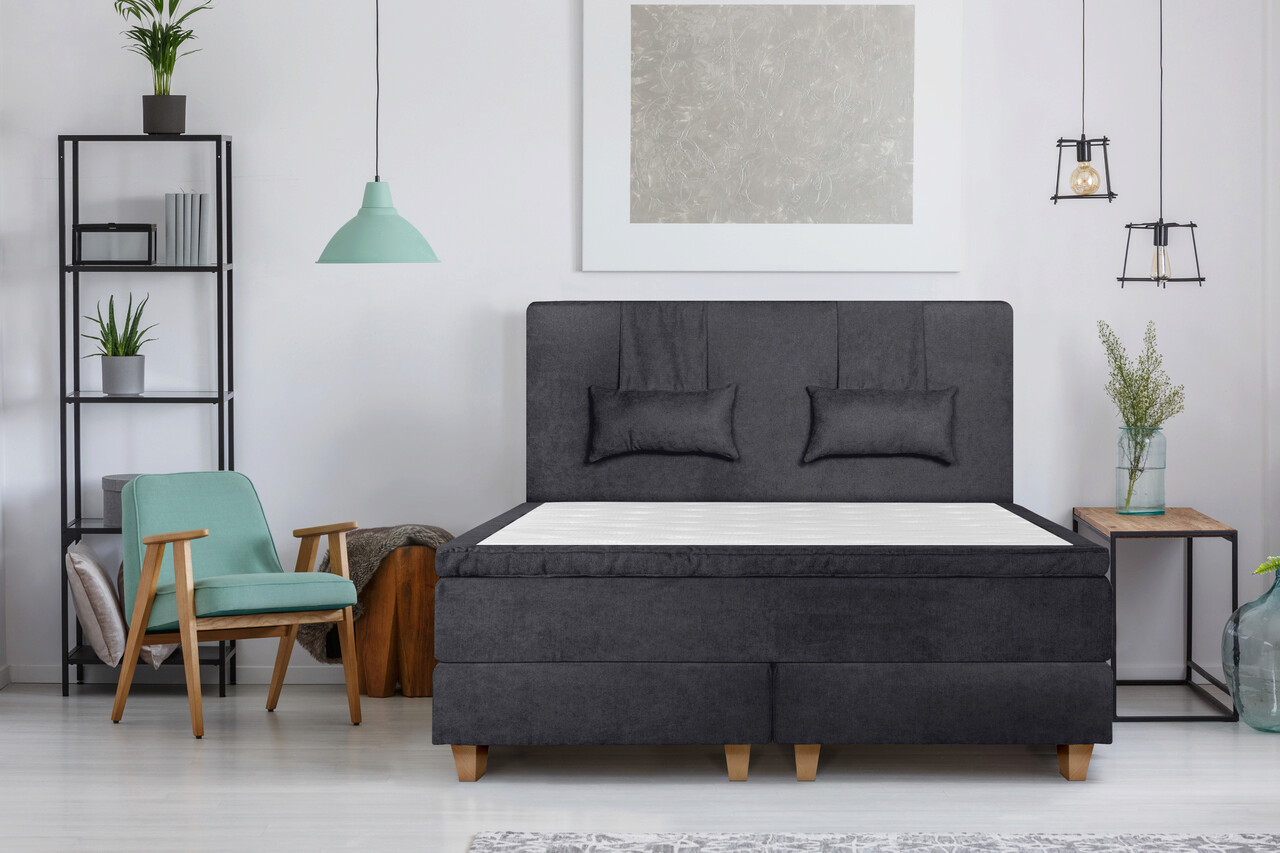 Pat matrimonial, Stockholm, Classic E, 180x200 cm, saltea tip Pocket, topper memory, Graphite