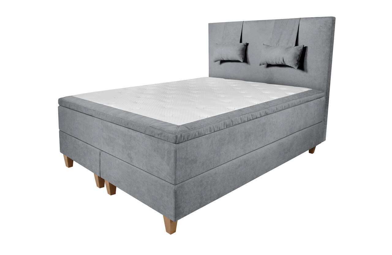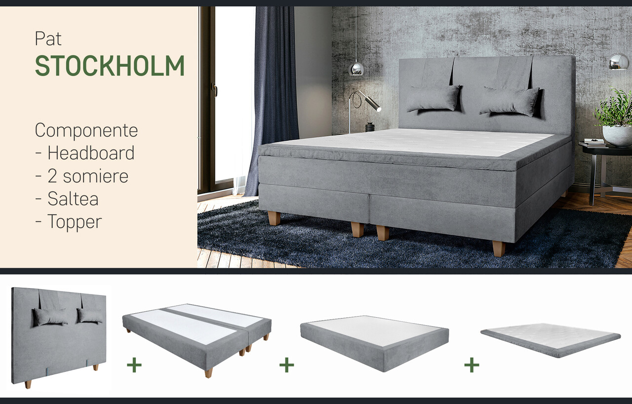 Pat matrimonial, Stockholm, Classic E, 180x200 cm, saltea tip Pocket, topper memory, Gri