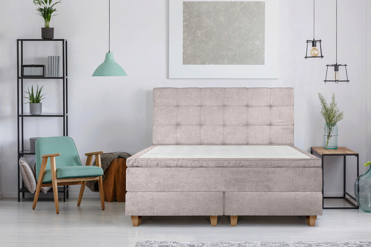 Pat matrimonial, Stockholm, Dots E, 160x200 cm, saltea tip Pocket, topper memory, Taupe