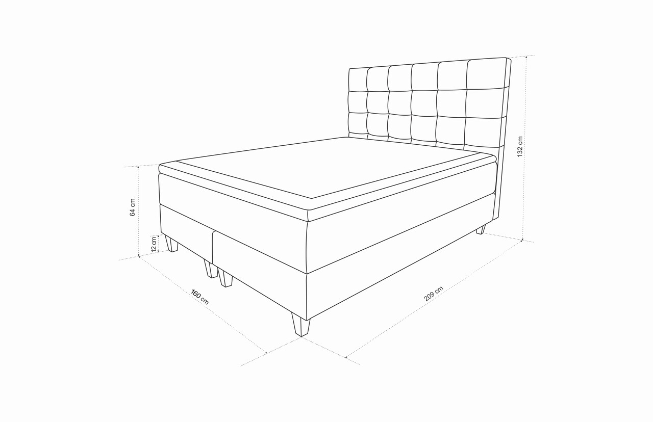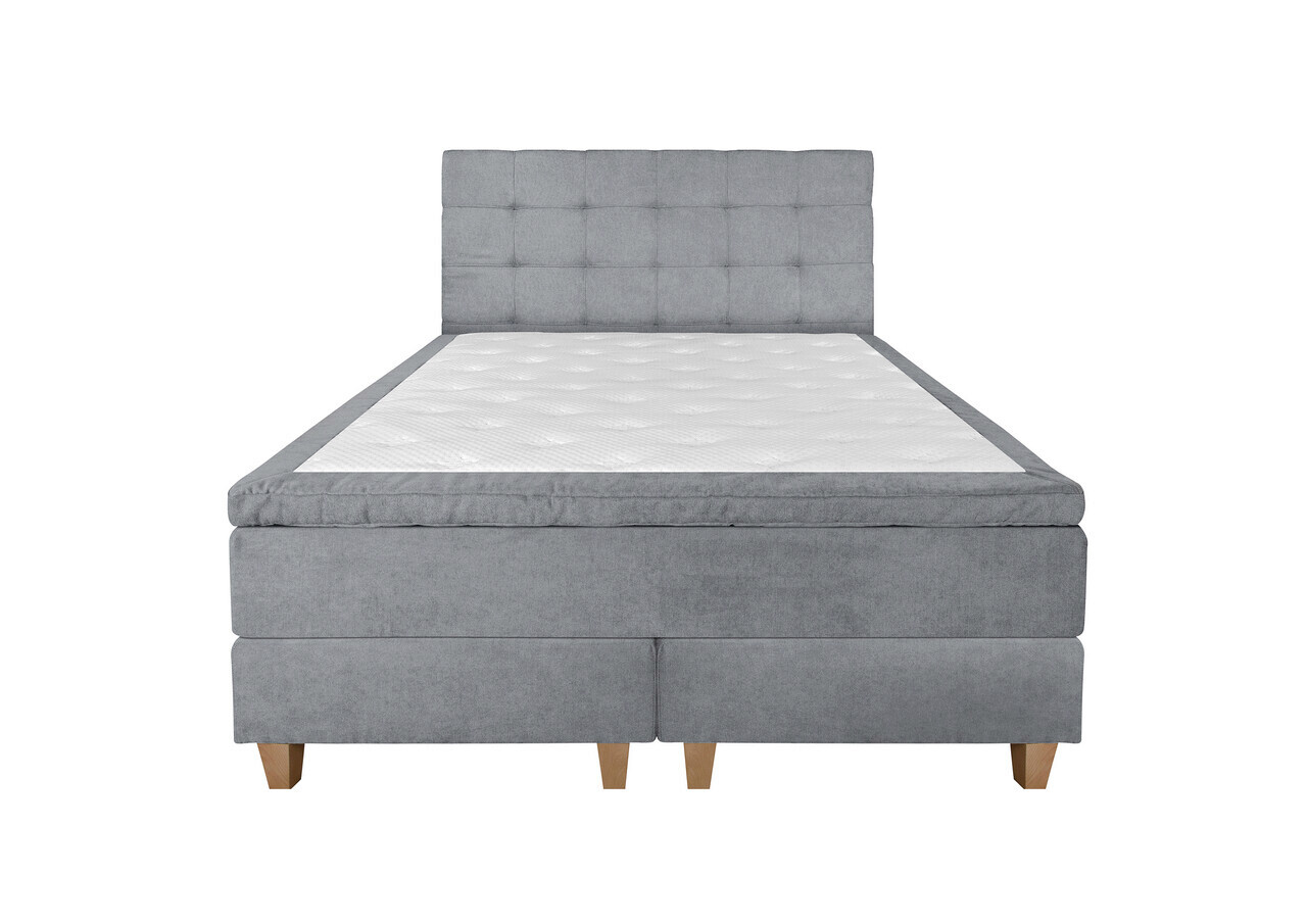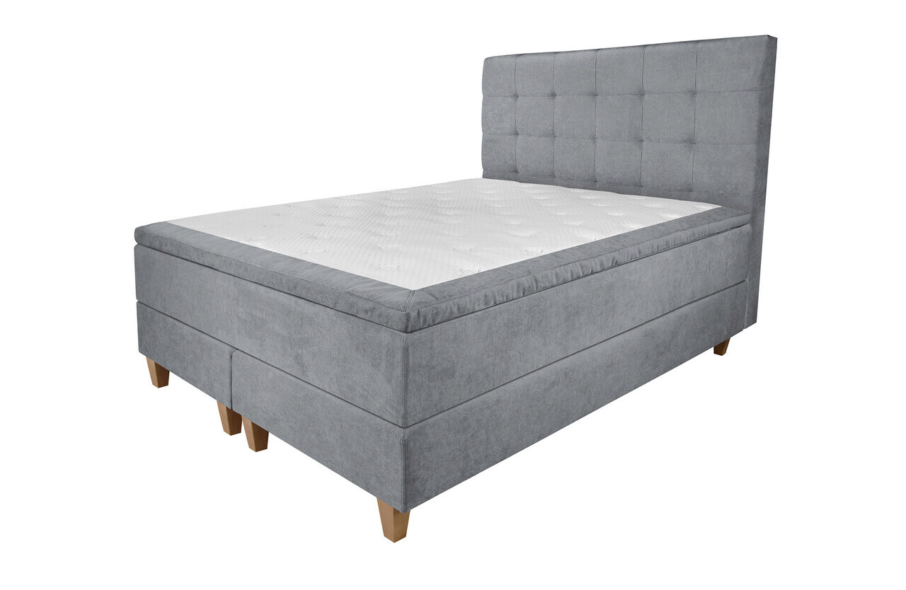 Pat matrimonial, Stockholm, Dots E, 160x200 cm, saltea tip Pocket, topper memory, Gri