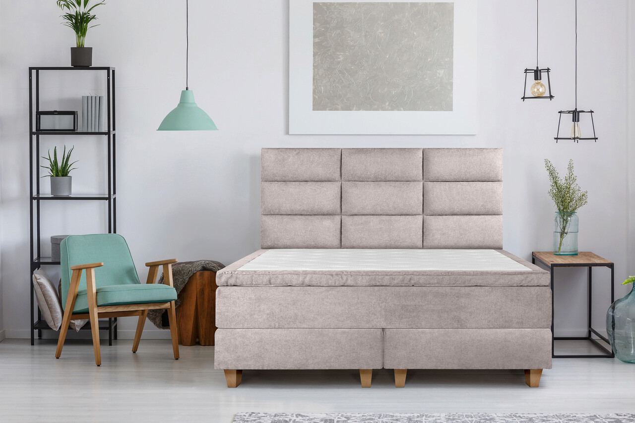 Pat matrimonial, Stockholm, Harmony E, 180x200 cm, saltea tip Pocket, topper memory, Taupe