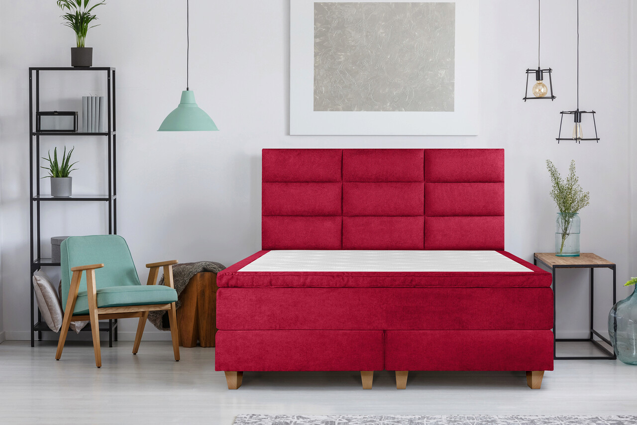 Pat matrimonial, Stockholm, Harmony E, 180x200 cm, saltea tip Pocket, topper memory, Rosu