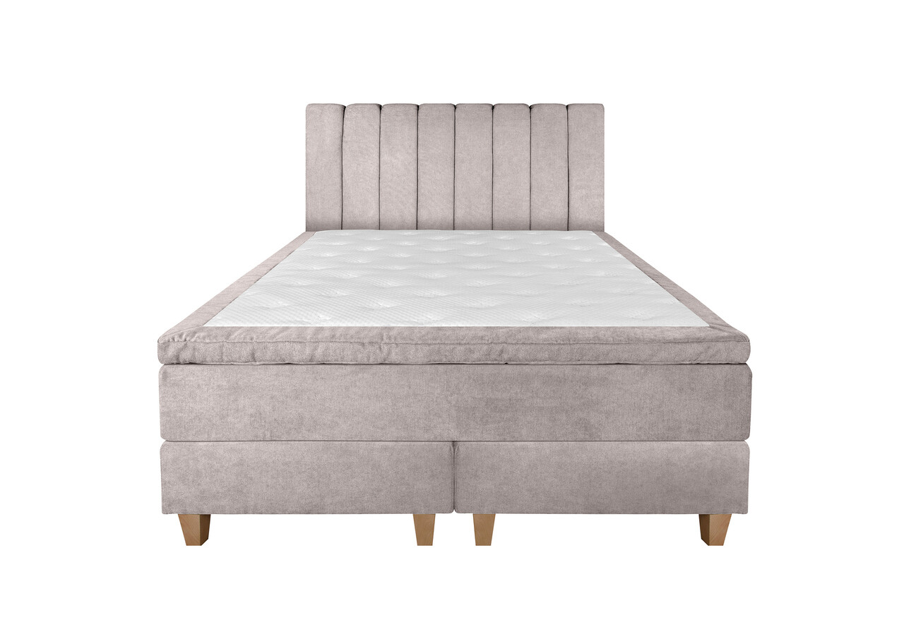 Pat matrimonial, Stockholm, Lines E, 160x200 cm, saltea tip Pocket, topper memory, Taupe