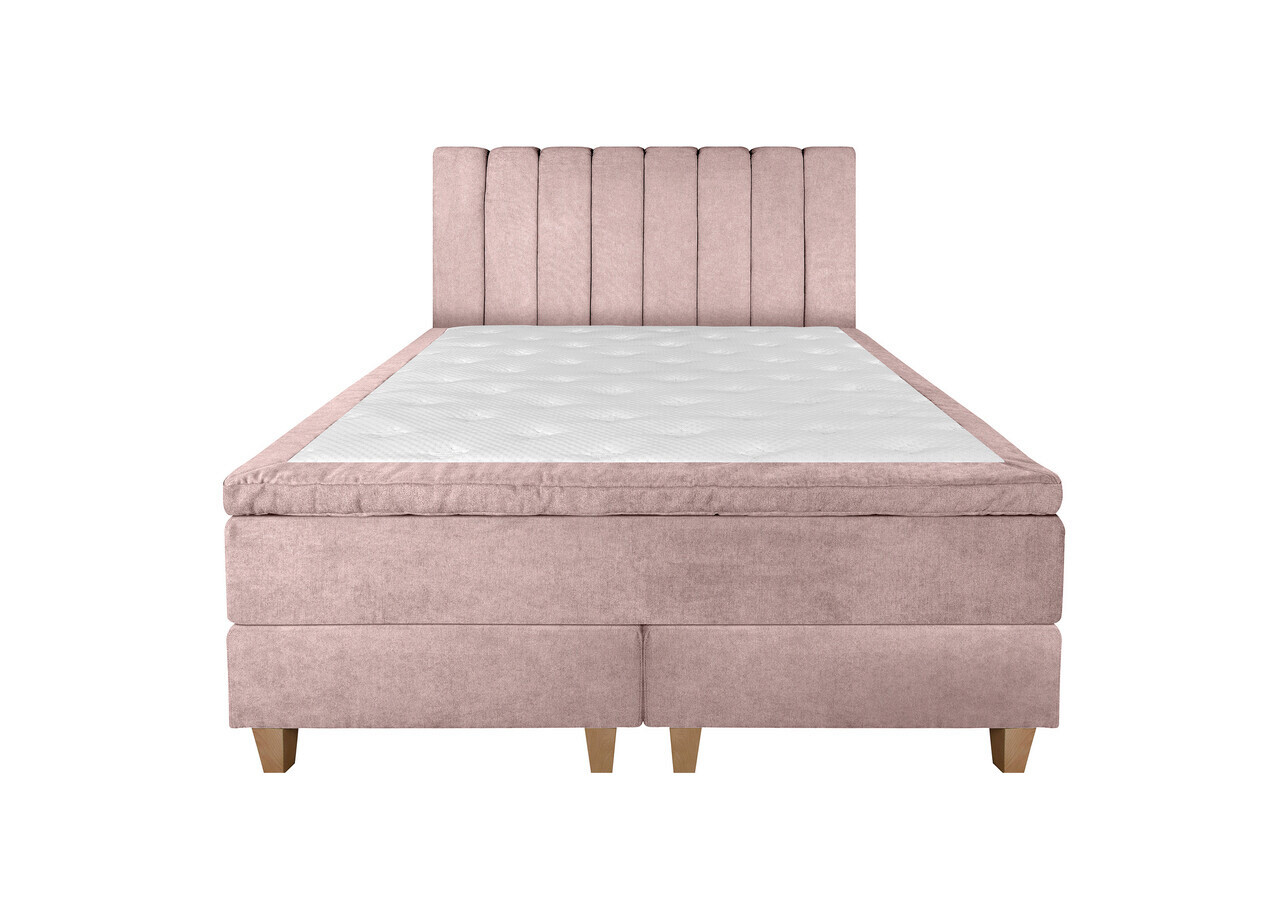 Pat matrimonial, Stockholm, Lines E, 180x200 cm, saltea tip Pocket, topper memory, Roz pudra